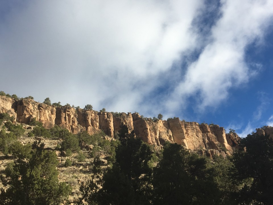 Last night was cold, maybe the coldest night yet. It had rained and sleeted through the night and the top of the canyon was covered in white once I faced the day. I followed a dirt road for about 10 miles as I walked towards Grants, NM and a few cars passed me covered in snow. It warmed up a little as the morning went on but not by much, it’s supposed to be unseasonably cold tonight so a good one to be inside. Queen B and I checked out the New Mexico mining museum in Grants and then ate some authentic New Mexican cuisine at El Cafecito. This place was legit! The sopapillas with honey are my new favorite food. Our friend Speed is meeting us here in town tomorrow and joining us for a section, so we’ll be spending the rest of the day relaxing and doing town chores; eating, bathing, eating, laundry, eating, resupplying, and eating.