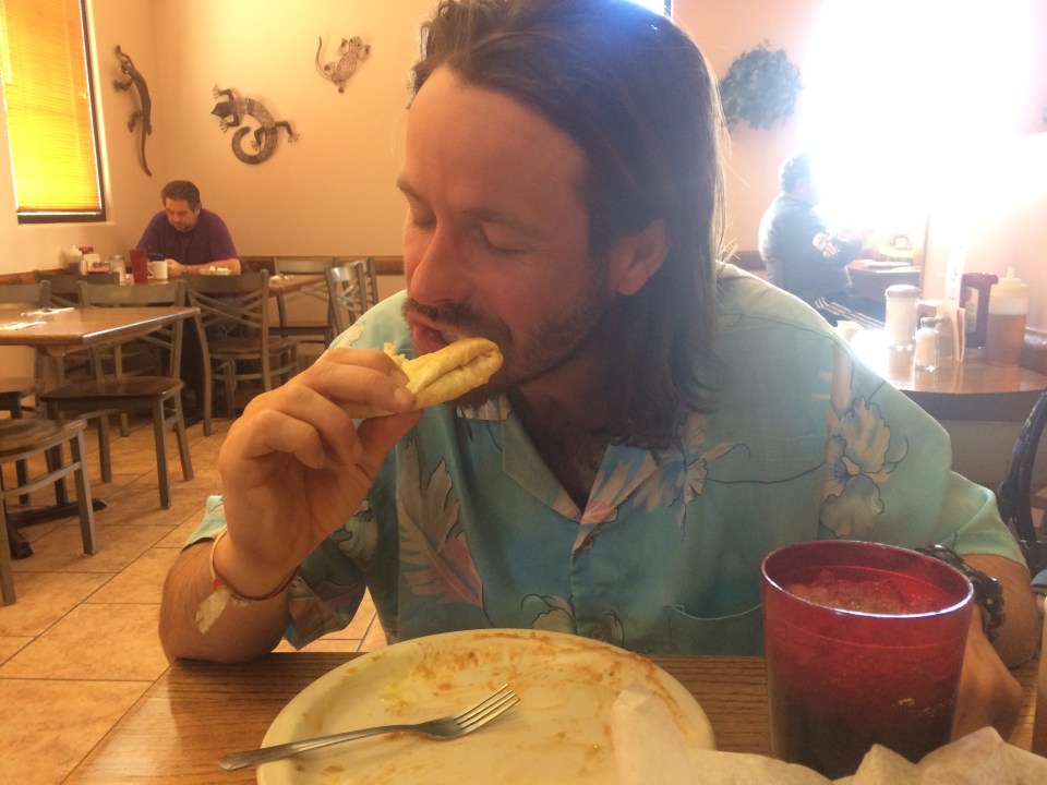 enjoying sopapillas and honey