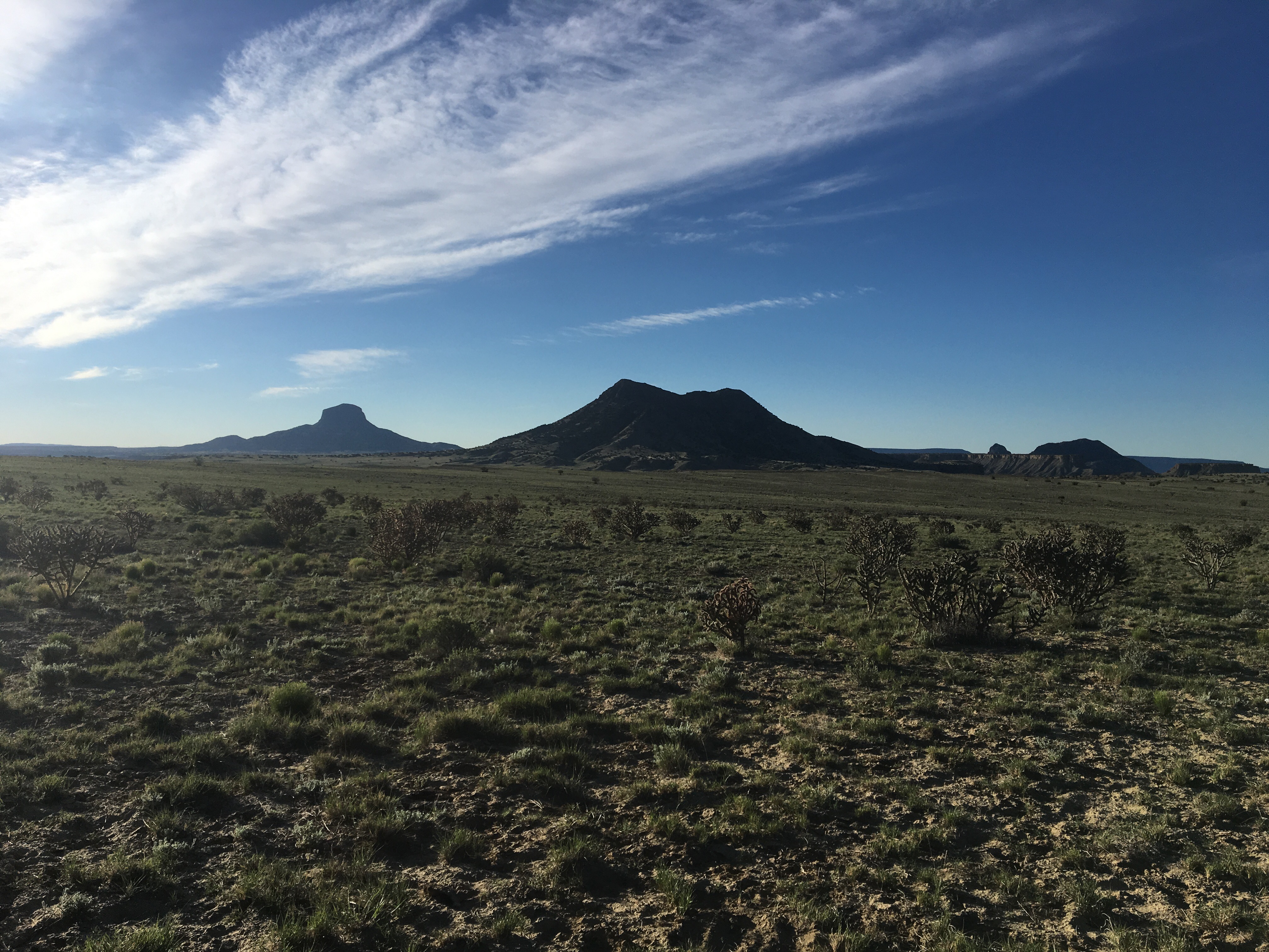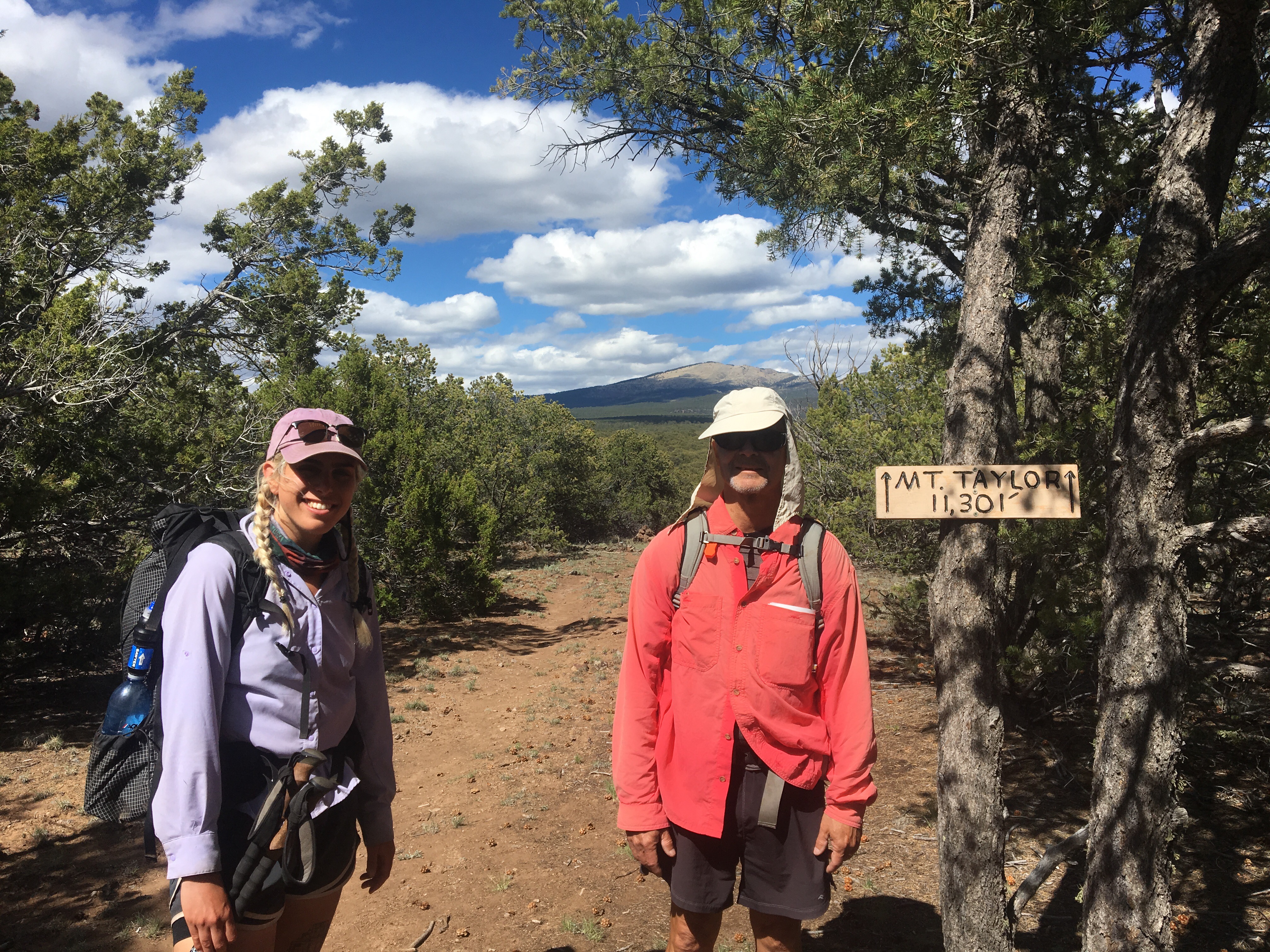 We were joined in Grants by our friend Speed who traveled down from Denver and is joining us for a stretch. Speed’s an experienced hiker who’s got lots of long distance miles on his legs. He’s a retired scientist with the BLM(bureau of land management) and has lots of knowledge about the outdoors. Like if I was ever on ‘Who Wants to be a Millionaire’ Speed would be my lifeline for all things to do with the outside. Queen B and I both met and hiked with him on the PCT in ’15. The 3 of us walked out of town around noon time today but not before grabbing a burrito at a taco shop at the edge of the city. The trail follows the highway for a few miles and then goes into the woods and climbs in elevation towards Mt. Taylor. It’s been a nice peaceful and relaxing day but as we get higher the temperature has been dropping. We’re right around 9000 feet and it should be cold sleeping tonight. On a positive note about sleeping though, my tent is set up correctly for the first time ever. I have about 6000 miles on this thing and never learned how to set it up the right way, granted I don’t always use it and try to cowboy camp when I can, when I do need it I just half ass the set up and get the job done as quick as possible. Queen B has been criticizing how janky the thing looks so she watched a video on the correct way to set it up and then put her knowledge to use. The thing looks good and is more spacious than ever. Now if I can only get her to do this for me every night. A little after 9 our friend Smiley, who I met on the PCT and QB met on the AT in ’13, showed up to camp. Smiley’s triple crowned and then some. He drove over from Navajo Nation and up a forest road to our campsite. He brought us all kinds of great trail magic; a bucket of chicken, coconut cream pie, pecan pie, fresh fruit, and lots of Coca Cola Classics. We’re camped near the trailhead to Mt Taylor so he was able to park and will be joining us for the day tomorrow.