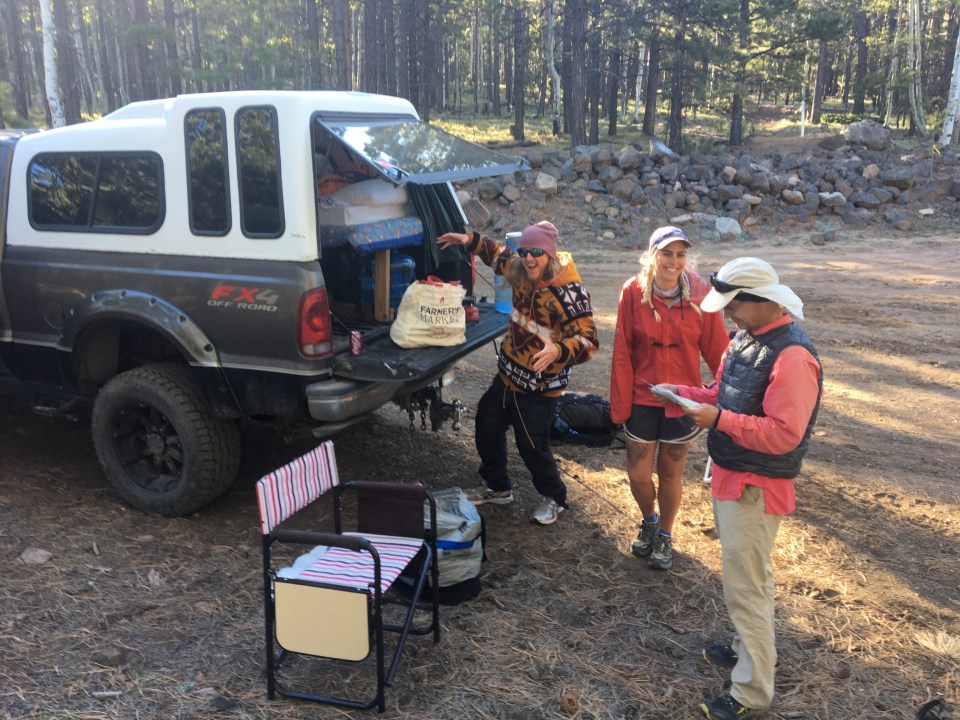 It was a little chilly last night but that gave me good reason to hit the ground running or at least walking quickly early this morning. The miles during the early morning hours are usually some of my favorite of the day, and this morning was no exception. The air was crisp, probably in the high 30’s, and I had wide open views of the sunrise all around me and could hear coyotes howling in the distance. Queen B was lucky enough to see a coyote this morning, but I didn’t get the chance. She said the two wild animals (herself and the coyote) stared at each other for a good 15 seconds and had a moment. We walked for about 13 or 14 miles and had to take a little side trail into a really cool canyon to get water so that’s where we stopped for lunch. By the spring we met Rabinath, a hiker from Amsterdam, and he walked with us the rest of the day. After about 10 more miles of walking through the forest the trail drops steeply down from the mesa into a wide open valley. It’s funny because I didn’t even know we were up on a mesa until the trail reached a point at the edge of the forest and peaking through the trees I could see vast expansive views of this beautiful valley. Once I got down into the valley the trail crossed a forest road and a couple guys, John and Alan, were just packing up from camping for the weekend. They said 5 hikers camped with them the previous night and they cooked for them. Trail magic is the best! Since they were just leaving they hooked me up with a bunch of leftovers; boiled eggs, ham, boiled potatoes, and string cheese that I shared with Queen B, Speed, and Rabinath. We cowboy camped in a patch of trees down around 6000 feet so I expect it to be a much warmer night.