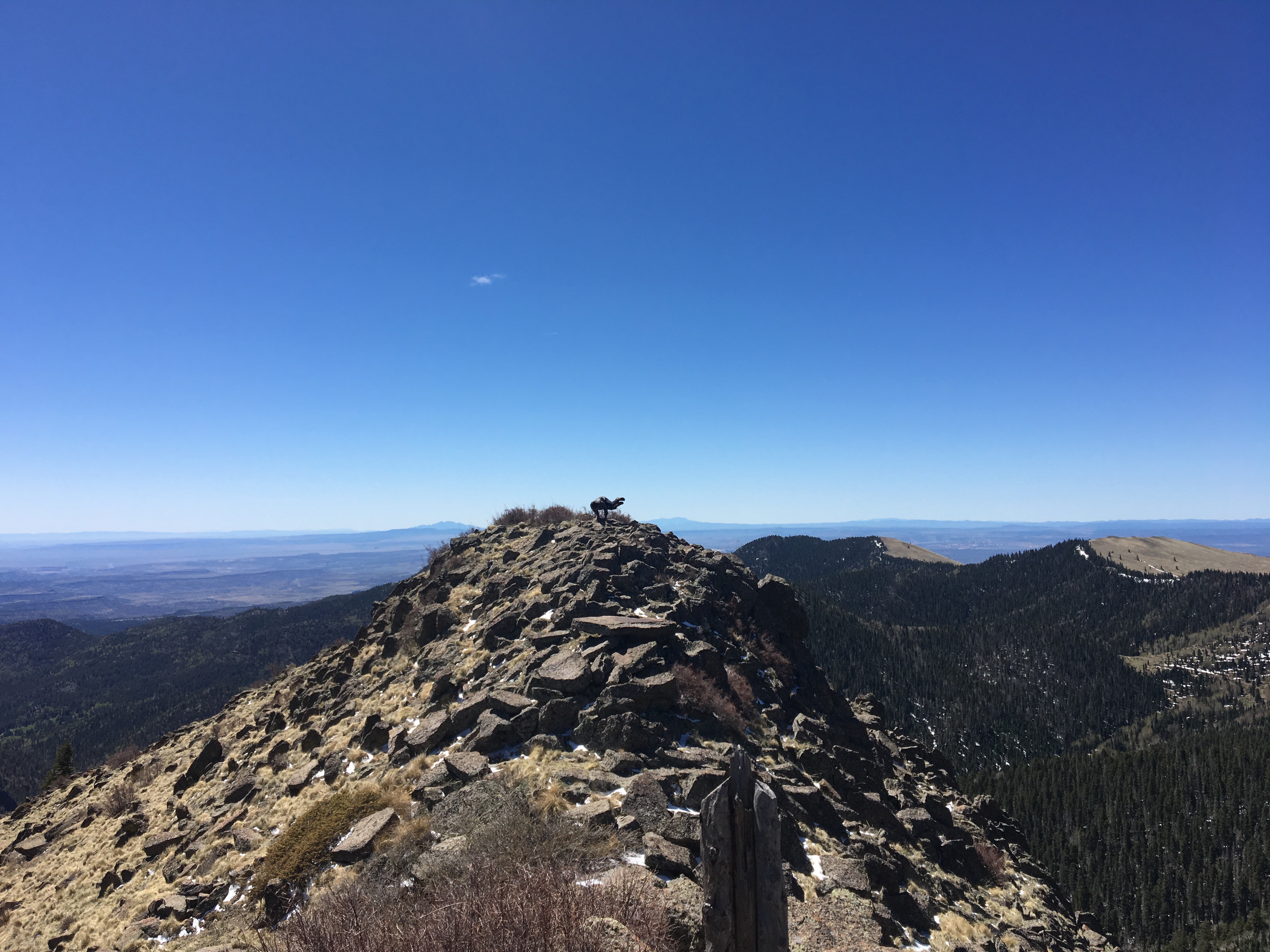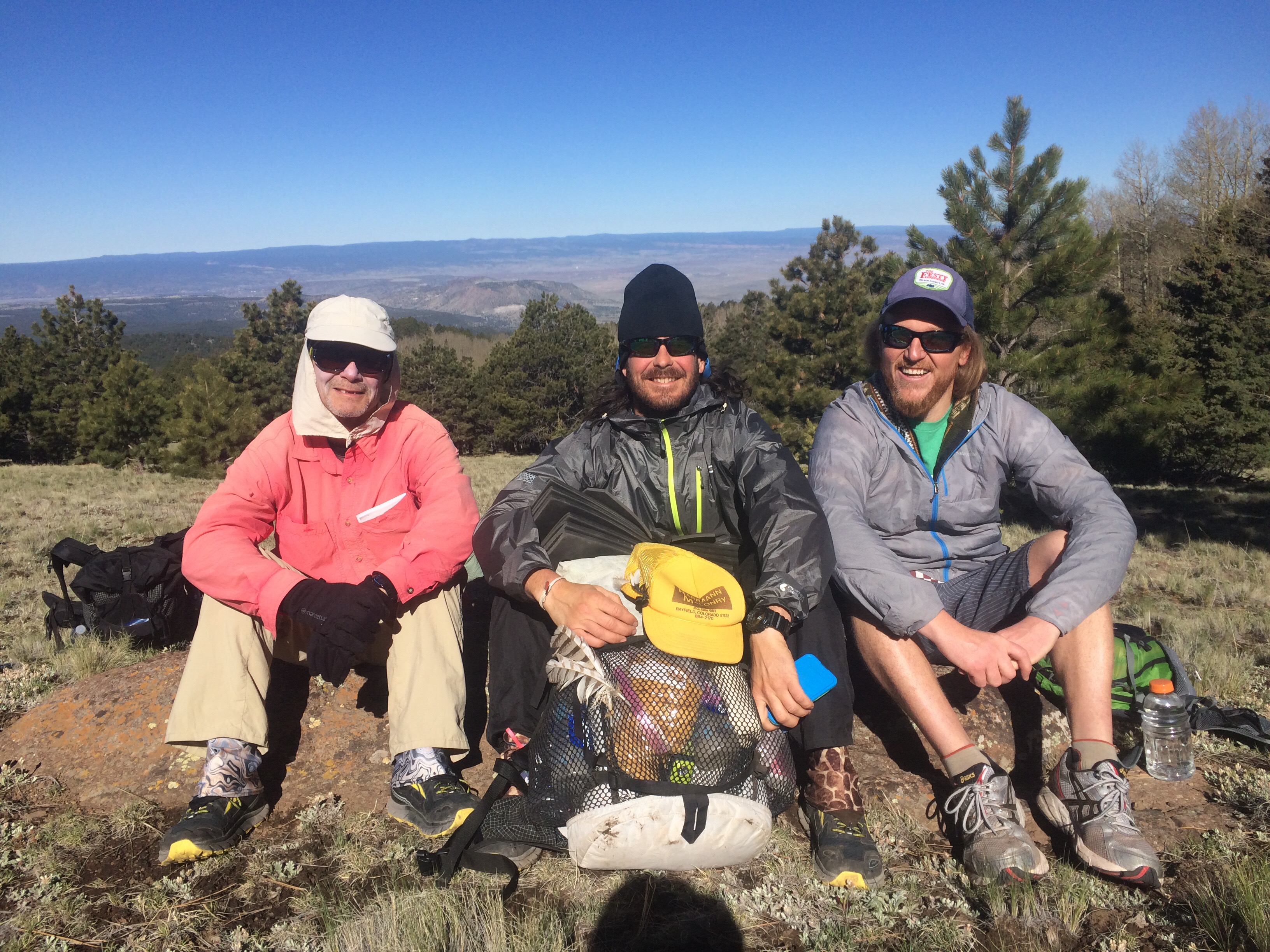 What a great day! Smiley, Speed, Queen B and I started the day by climbing Mt Taylor, one of the 4 sacred peaks of the Navajo. We then followed along a ridge to summit La Mosca Peak. Both peaks were over 11,000 feet and it was the first time of the hike we had to walk across any snow. Smiley turned back after La Mosca but he was awesome, he gave us some good info about the CDT and brought with him lots of food for today’s hike and provided us with trail magic all morning. Speed, Queen B and I then spent the rest of the day enjoying some sunshine and descending down a few thousand feet. We found a place to cowboy camp in a patch of trees just off trail on the edge of a wide open range.