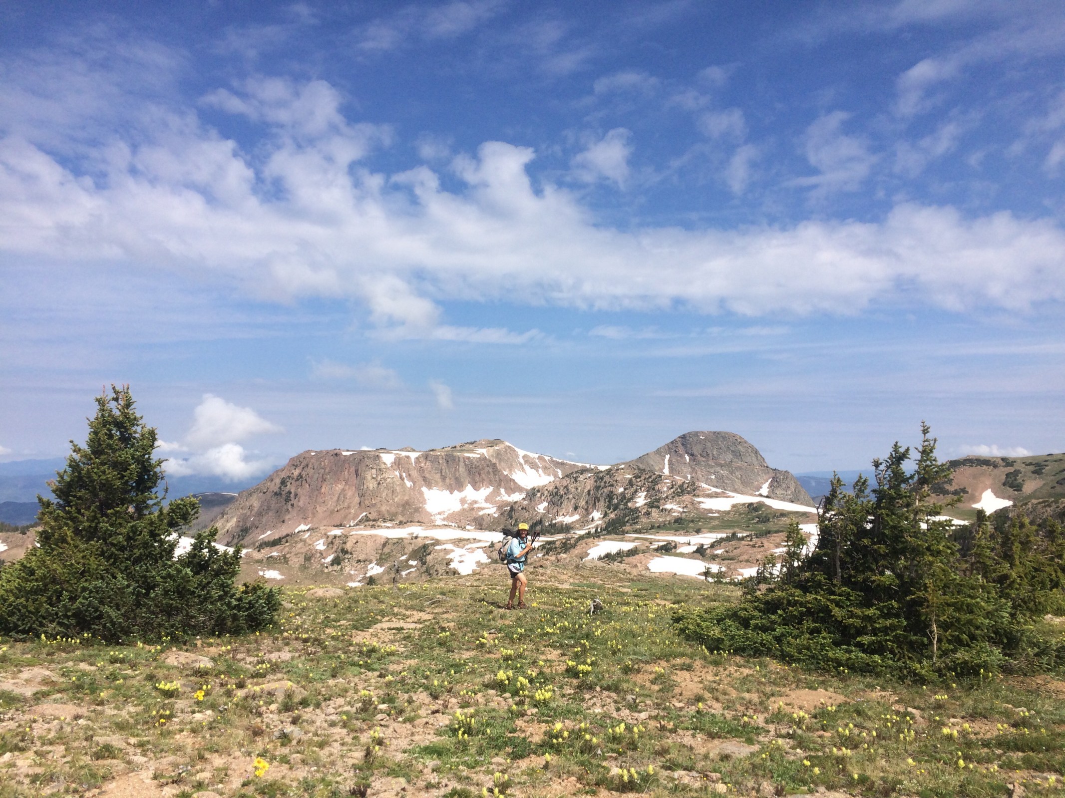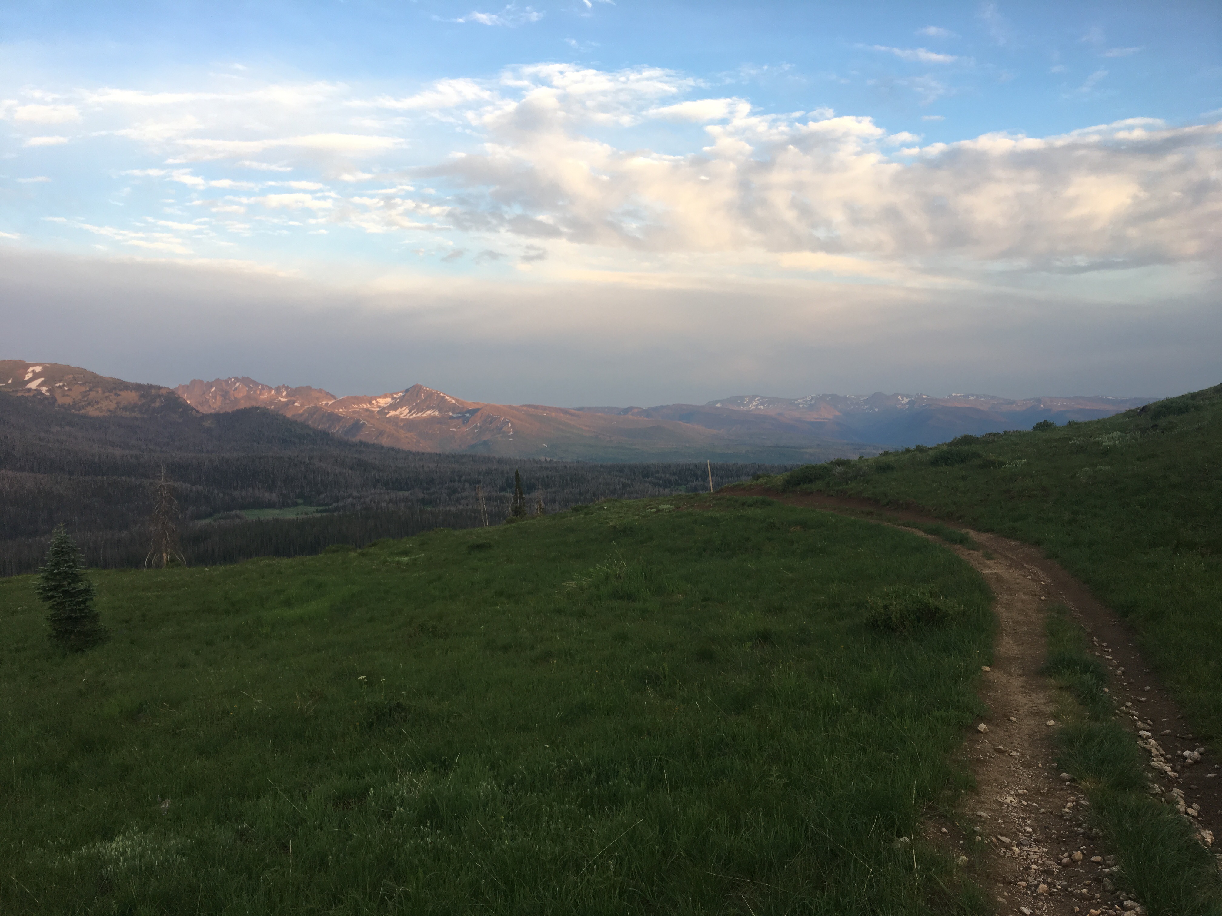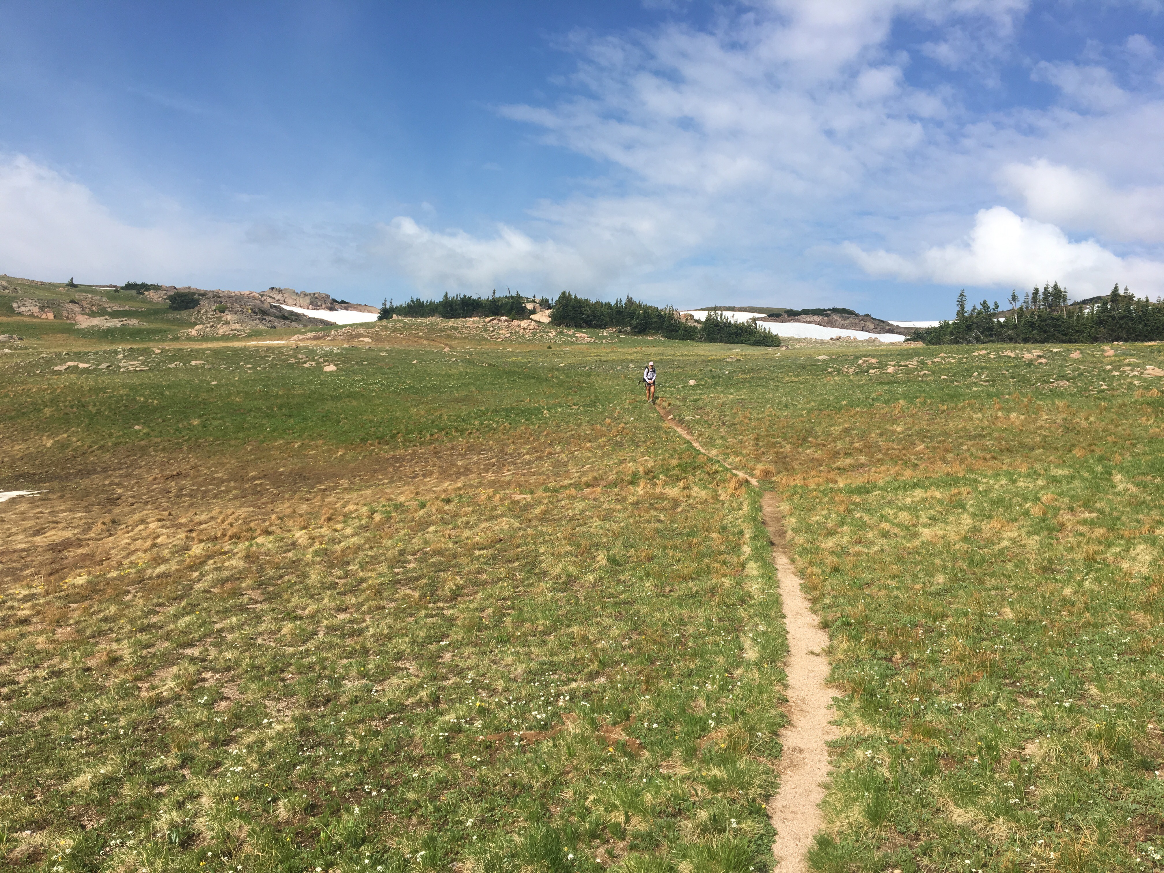 Had another big day out here, slightly less than yesterday but still some big miles. About 10 miles into the day we crossed the border into Wyoming. I think crossing state lines on a thru hike is a big deal; it gives me a sense of accomplishment and also makes me feel like I’m in a whole new place, which I am. Recently I heard Colorado referred to as the hardest state out of any on the triple crown. Although I’ve got a couple states to go I would agree with this statement. Previously I would have said New Hampshire but since it’s only about 160 miles, so I guess I’ll give NH the pound for pound title. Colorado has been amazingly beautiful and at the same time consistently difficult and relentless. I had very few easy days through CO. Still awesome though. After we crossed into Wyoming we followed the trail up and down through open fields and forests for about 20 miles before reaching Battle Pass this evening. We didn’t see another person all day and then there was absolutely no traffic at the Pass. For a few minutes I was concerned that the world had ended. It didn’t. After awhile of trying to hitch we called a hotel in town and the owner, Desi, drove up and gave us a ride down into Encampment. Spending the night here, resupplying and getting back at it tomorrow evening or something. Follow me on insta for more pictures @endlesspsummer
