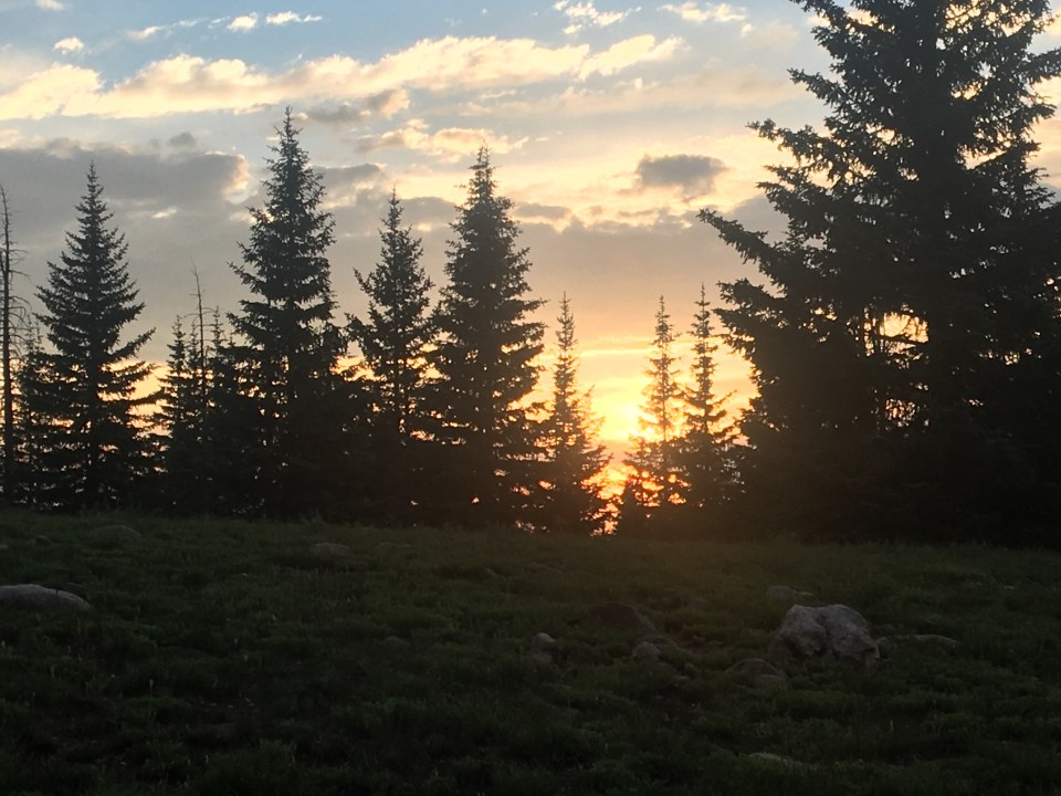 We just had ourselves a banner day out here on the Continental Divide National Scenic Trail. At 33 miles today was our biggest day of the season and what should also be our last full day in Colorado. We started our day in the Zirkel Wilderness aka the Steve Urkel wilderness and it was awesome. This place is a hidden gem within the state. I hadn’t heard of it until just a couple days ago and judging by the lack of hikers not many others know about it either. For a few miles this morning we hiked with Thunder and Snow. We had heard of this couple and had even seen their tracks because they skied through the San Juans ahead of us. If you look back in this blog I’m pretty sure I’ve got pictures of their perfect figure 8’s in the snow. QB and I had a good pace going all day and didn’t even slow down during some afternoon rain. This was probably the most substantial rain we’ve got the whole trip and it really wasn’t all that bad. I think I even saw an eagle today. We’ve had many unconfirmed eagle sightings(if either of us see a big bird it’s an eagle until proven otherwise), but this was as close as it gets, I’m almost positive it was a bald eagle. There was a nice climb at the end of the day and as we looked for a place to camp we were rewarded with a spectacular sunset that will probably be our last in Colorado.