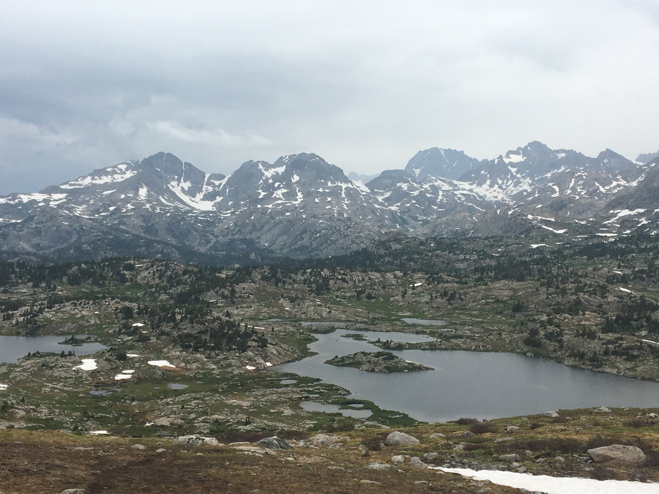 The trail this morning wasn’t well traveled or well maintained. It wasn’t easy for about 10 miles going over and around lots of blowdowns and a handful of times we went the wrong way because intersections weren’t marked. All this slowed us down but eventually we passed a popular trailhead and the trail opened up. As we walked by lots of lakes we had huge views of some big time mountains. I met 4 girls who had road tripped from Massachusetts to hike out here and got my first, ‘Lynn, Lynn, City of Sin’ in awhile. Besides that snarky comment they were really nice and were only a couple degrees of separation from me since they knew people I knew. Shortly after meeting them we stopped for lunch and Queen B and I had a very refreshing swim in Dad’s Lake where we met another thru hiker, Jeremy. After lunch this afternoon went smoothly. There were a few river crossings that were deeper than normal(about thigh deep) and some awesome views of the Winds. We stopped for supper around 7 and then for the last hour walked into a wall of mosquitoes. This mosquito situation was as bad as any I’ve ever been in. Other than that, great day.