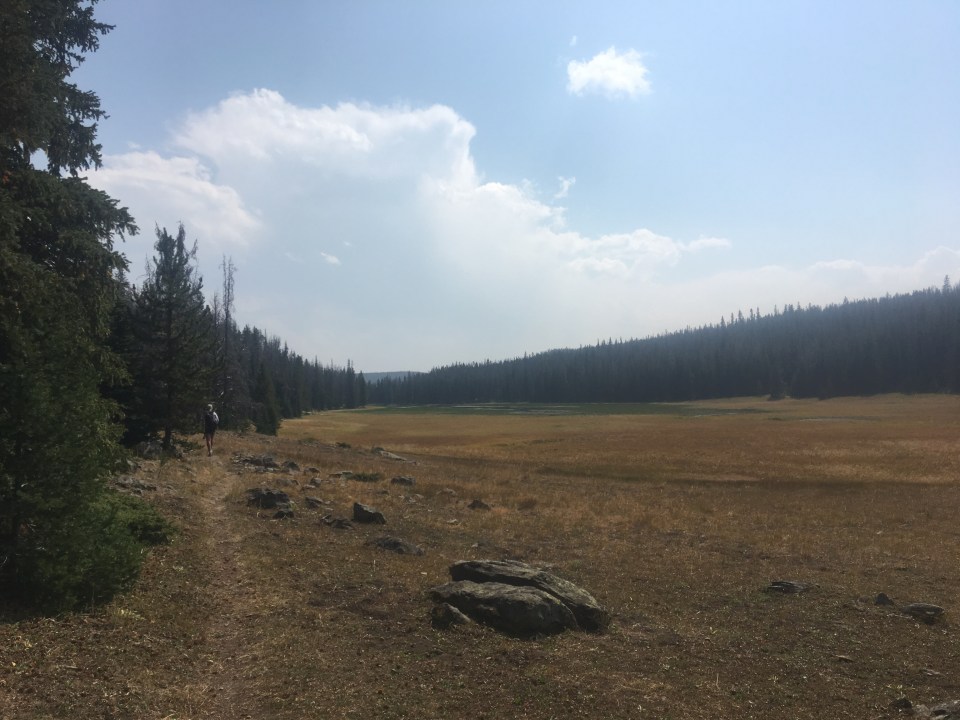 The trail was a bit bland today. Easy but bland. Although it’s been enjoyable, this whole section since Anaconda has been somewhat dull as far as the CDT goes. We walked a soft dirt path for awhile through a lodge pole pine forest and then joined a dirt road for miles. We walked in and out of the forest and over a few open meadows until we got to MacDonald Pass. Everything was all good today except for one mile that had tons of blowdowns that we had to walk over, under or around. A total nuisance. At the pass we put our thumbs out and the first truck that went by turned around and picked us up and took us into Helena. Hitchhiking with QB is pretty easy. Ted, a retiree and avid hiker, along with his dog Trip, took us all the way to our hotel and even offered us a ride back to the trail on Monday. We’re planning to take a day off here tomorrow and enjoy the capital so we took care of our resupply tonight then went to dinner downtown before crashing out for the night.