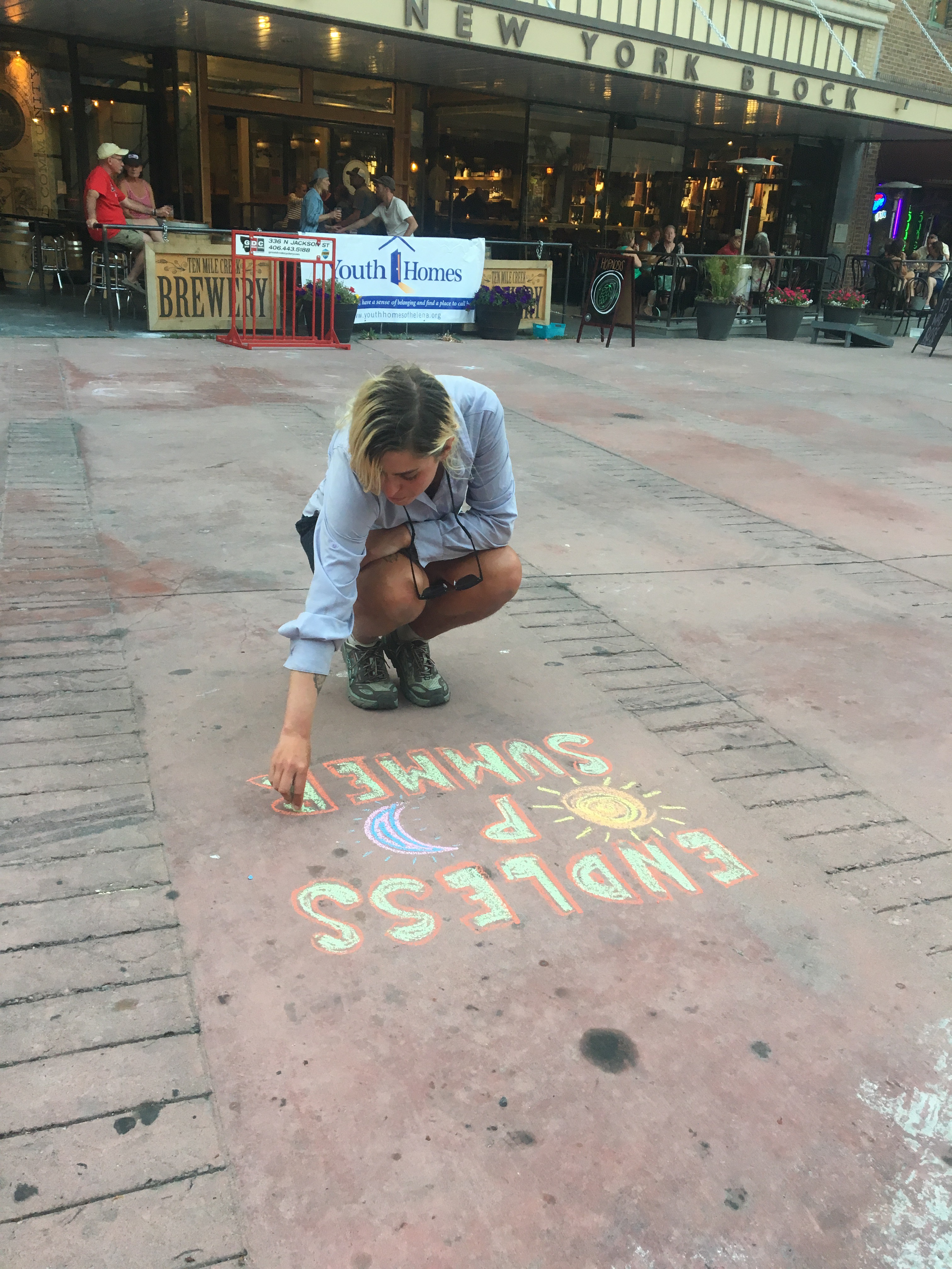 QB beautifying the sidewalk with a chalk mural