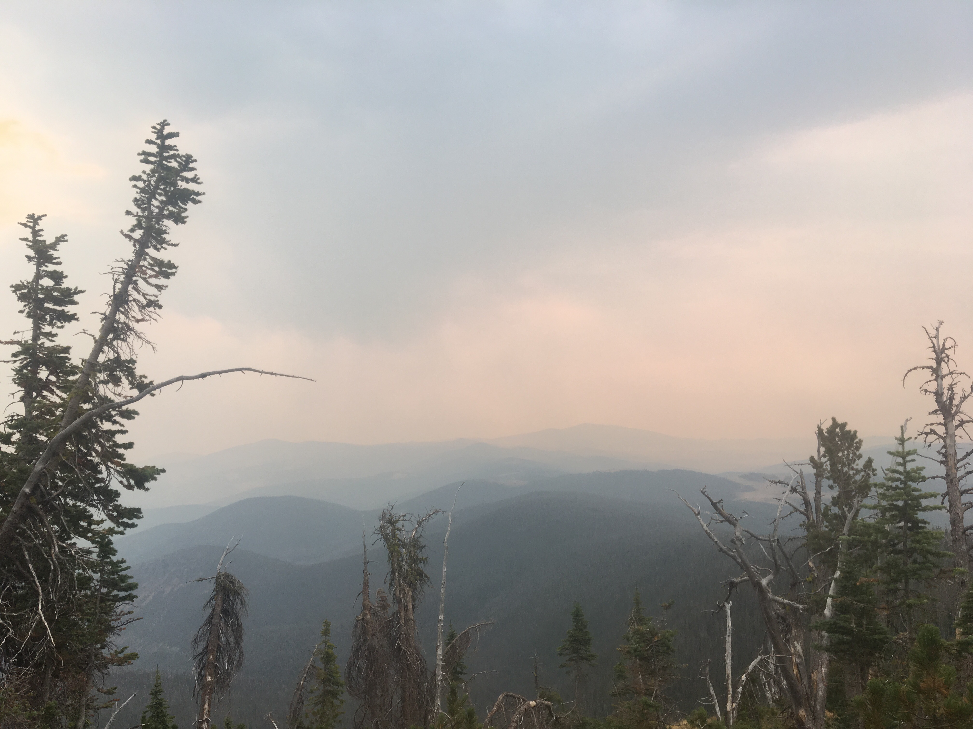 Today was a hot, humid, hazy, and smoky day to walk to Canada. The water sources were very limited but luckily we came across caches twice. There’s some awesome person in the area that stocks caches at both Stemple Pass and Flesher Pass and because of them I didn’t dry up today. Due to the weather and a bunch of short steep climbs it was a tough day to conserve water. We hiked with Mac and Appa this morning until those guys took a different route towards town. As of right now there’s a big wildfire up ahead causing a trail closure and a reroute so hikers are taking a few different routes to get down into Lincoln. Queen B and I got to Flesher Pass tonight and instead of going to Rodgers Pass(where the trail is closed), our plan is to walk the road from here to connect with the reroute a little earlier. This plan will eliminate some of the highway walking around the closure that will be inevitable. Wildfires and trail closures are a pain in the ass but also part of the hike and not really all that big of a deal for us compared to the people who are living up here and who are actually affected by the fires. Anyway after a long hot day we found a spot to camp about a quarter mile from the road and we’ll be walking that for awhile tomorrow before getting into Lincoln.