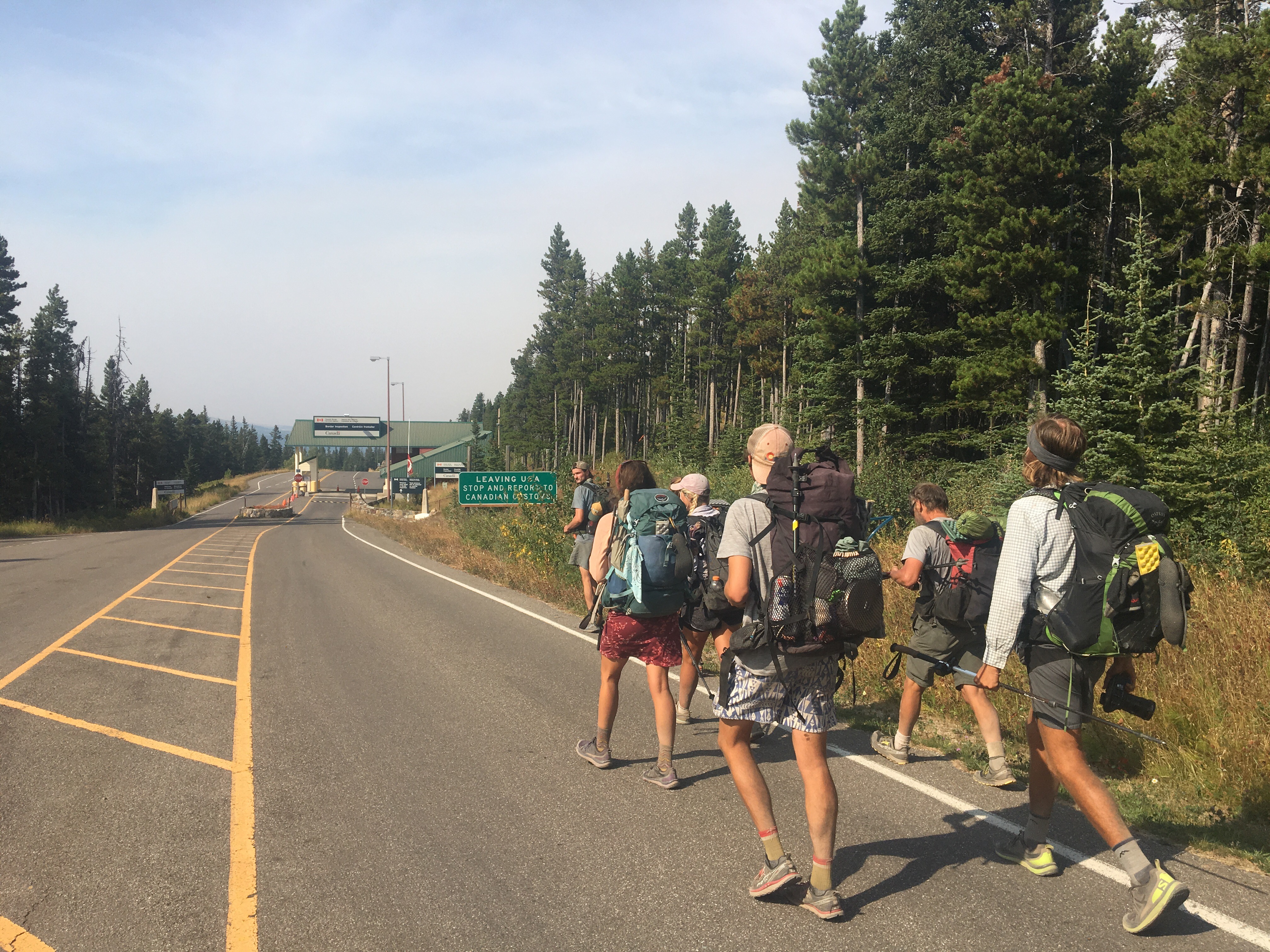 A bunch of kids walking to Canada