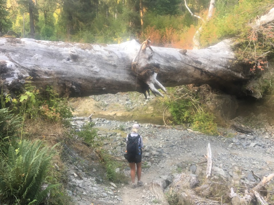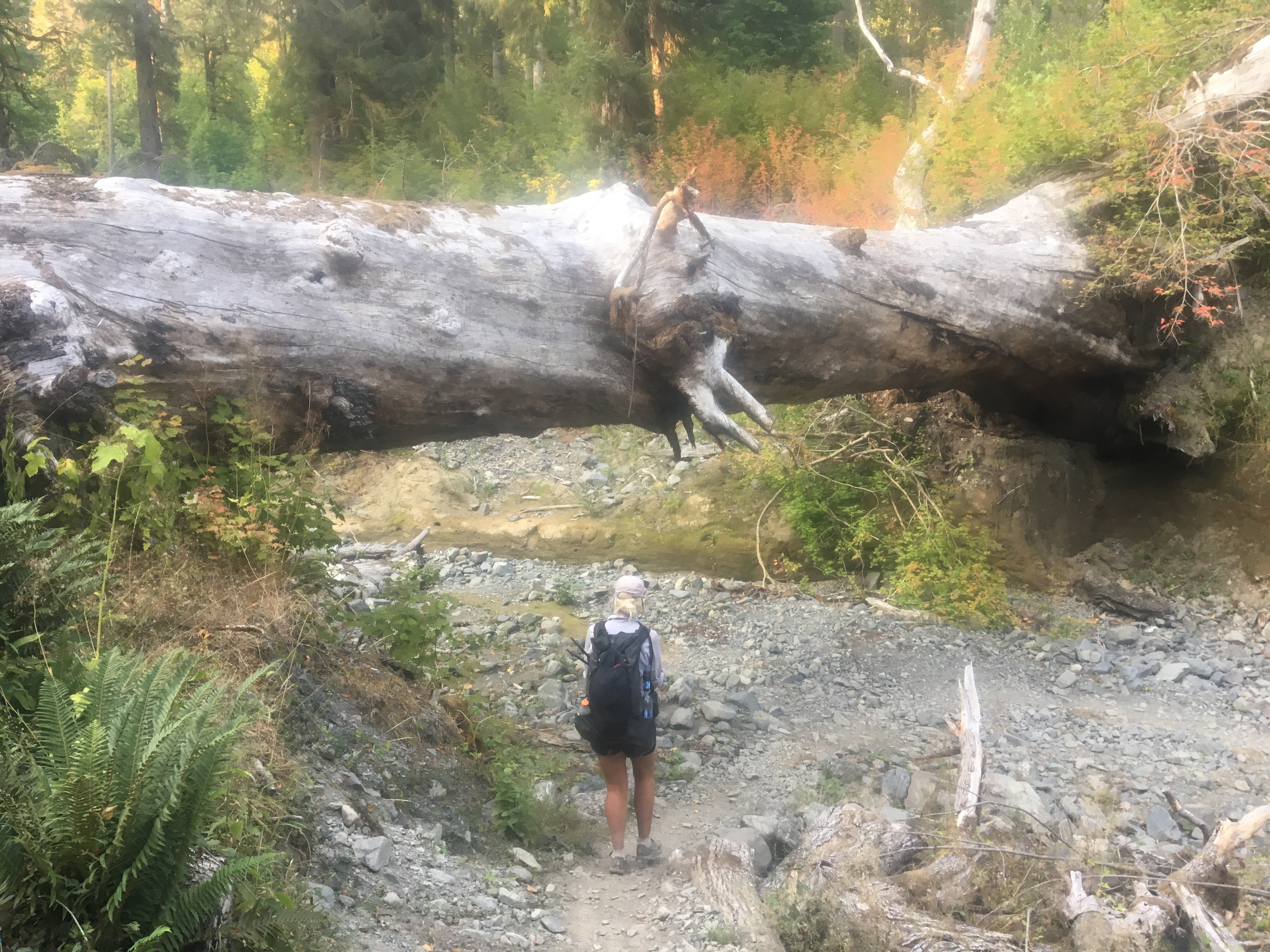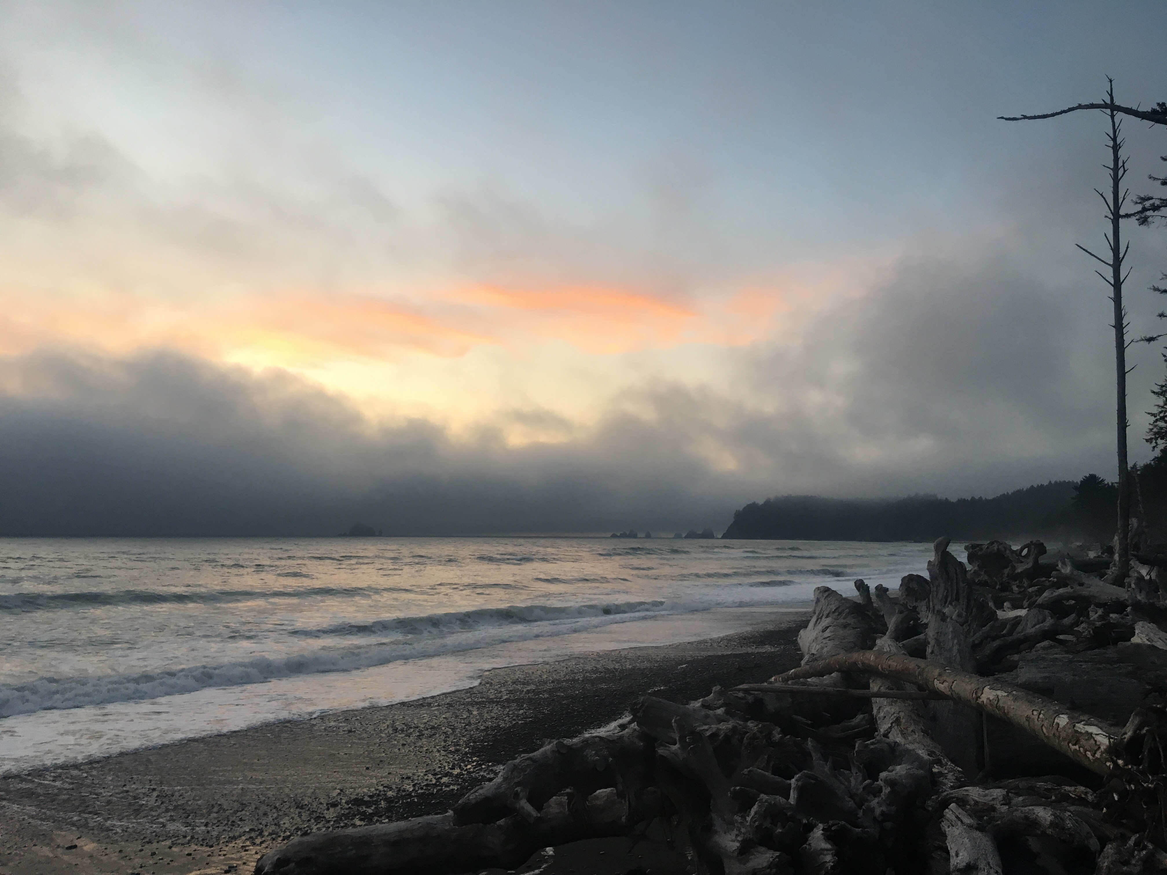 9/16 After we packed up this morning we walked down to the beach again to check on the whales. Still there, doing their thing. We ate some breakfast burritos at a gas station, then walked over to get some info at the Kalaloch ranger station. Ideally I’d like to do a traverse of the whole Olympic park but they’re getting some serious rain in the next few days so we might do a shorter hike in case we have to bail early. Since we can only get permits from certain ranger stations we had to hitch south to Quinault. We got a 30 minute ride from Paul and Ron to exactly where we needed to go and got things taken care of. The rangers at Quinault were former thru hikers and much more helpful. From Quinault we had to get back up north to the Hoh rain forest. Oatmeal, a ranger and former thru hiker, drove us for about an hour then Elsie, a Belgian woman on holiday, brought us the rest of the way. I know I’ve said it before but I’ll say it again; as long as there are cars, hitching with QB is pretty easy. From the Hoh visitor center we walked 10 miles along a nice flat trail through an incredible rain forest. It’s green, mossy, and the trees are enormous. I can show you pictures but you really have to see it for yourself. We got to the Olympus Guard Station where there’s a bunch of sites and called it a day. Really hoping the rain holds off or at least isn’t too bad.