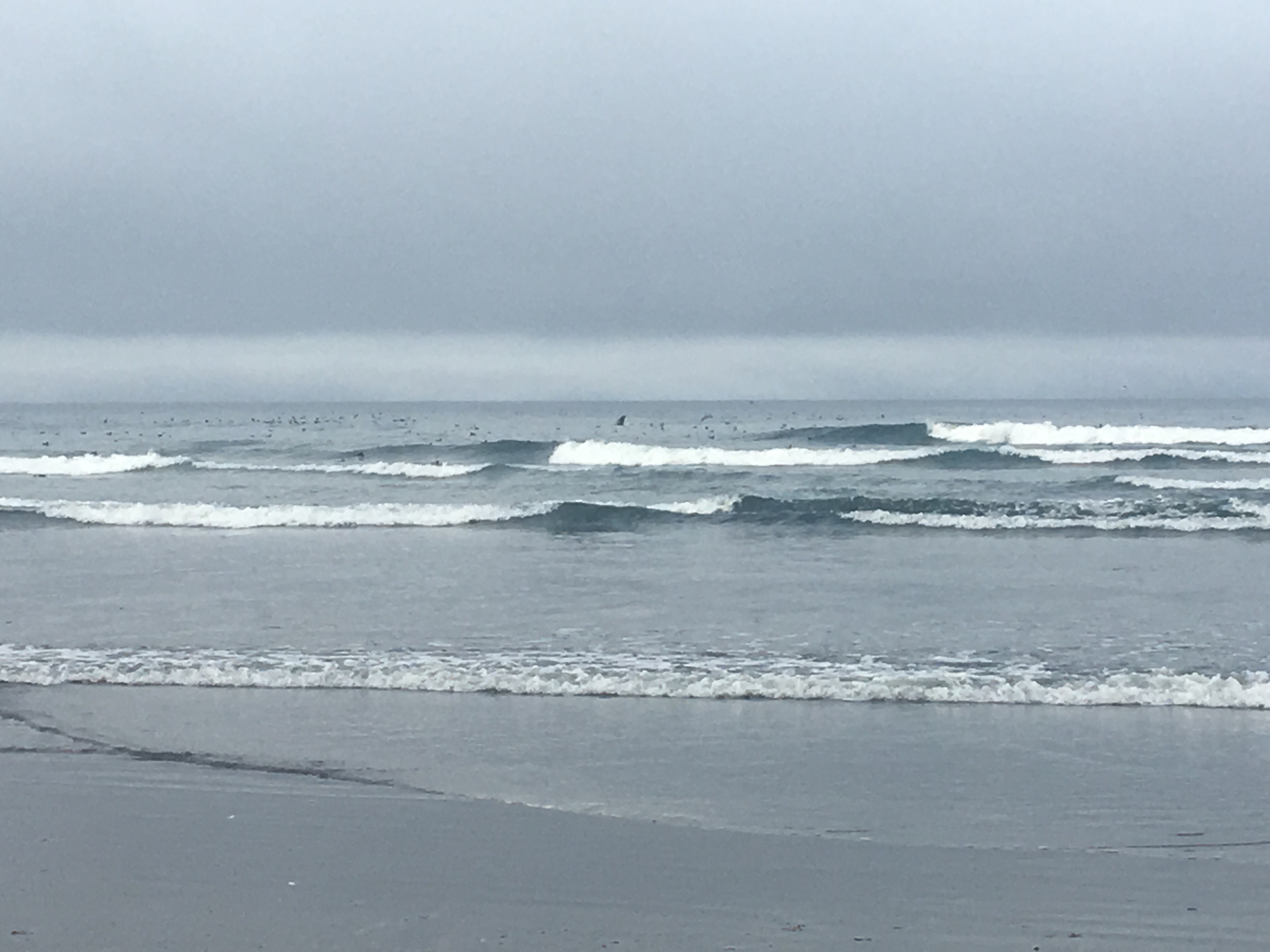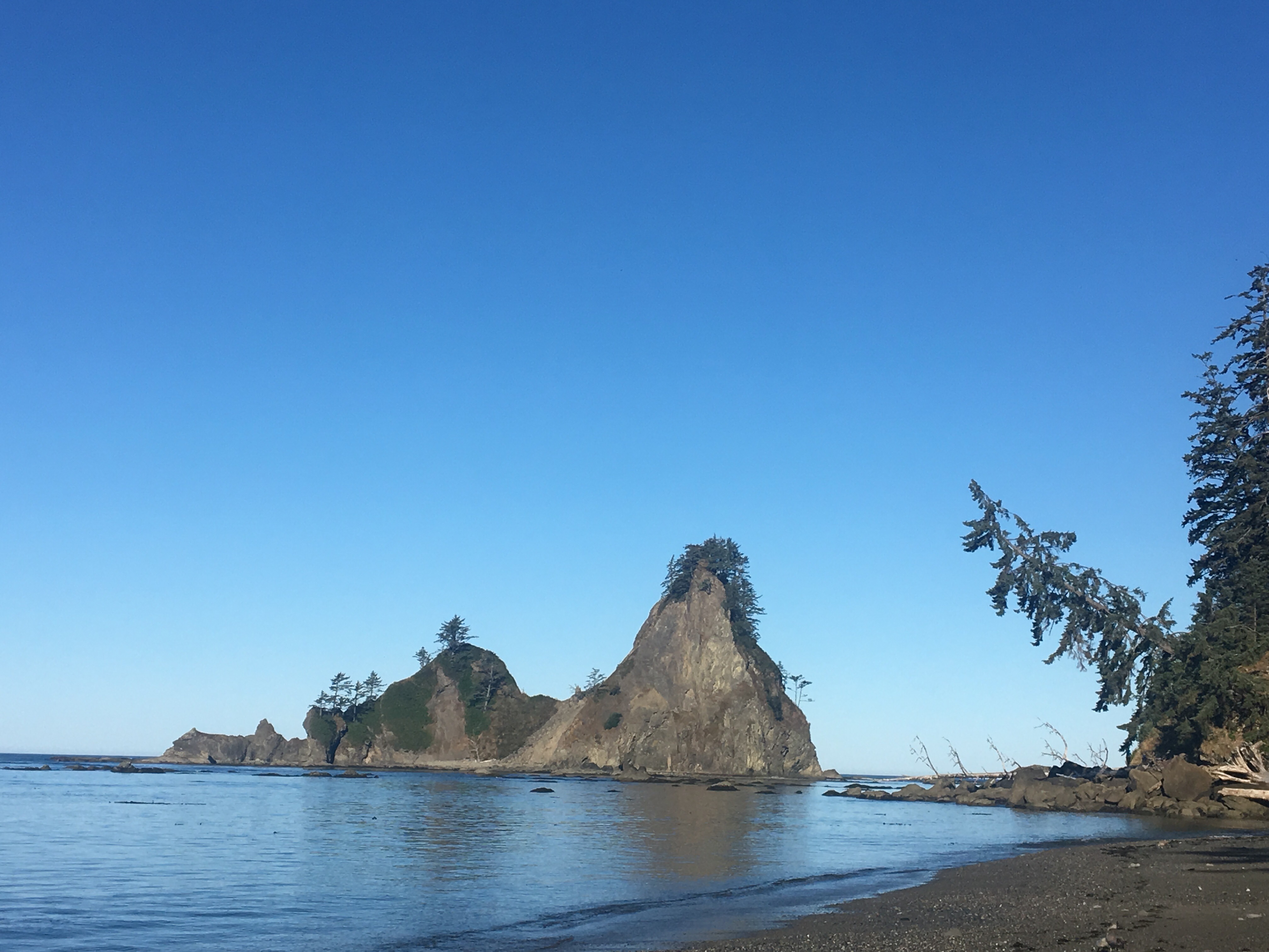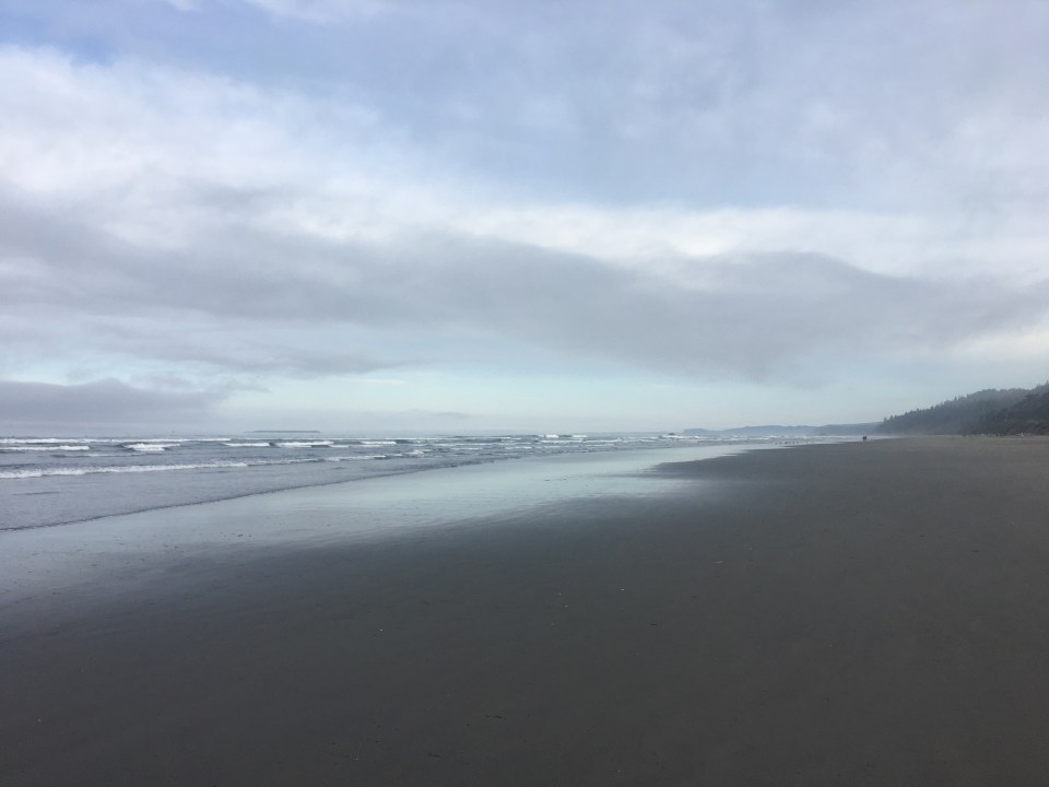 9/15 From our campsite by the beach we walked about a mile north to Cape Alava, the westernmost point in the Continental U.S. We followed a trail inland for about 3 miles through a forest and came out at the Ozette Lake trailhead. The ranger in Port Angeles the other day told us this was a busy trailhead and we shouldn’t have trouble getting a ride out. Dude didn’t know what he was talking about. After 4 hours of relaxing by the roadside we got picked up by the 4th car that passed us. No big deal, there was a blackberry bush nearby that kept me busy and a huge bald eagle soared overhead. It was another firefighter that ended up driving us about 20 miles to the intersection with the busier rt 112. As we were getting dropped off, the bus to Forks was pulling up. Perfect timing! During the 40 minute ride to Forks we picked up a hiker and immediately I thought he looked familiar. It was Funjumper, I met him in Belden, CA in ’15. He didn’t remember me and may have even doubted that I remembered him until I recalled that he was from Quebec. Anyway he just finished the Pacific Northwest Trail that goes 1200 miles starting in Glacier and ending out here on the coast. When we got into Forks the town was bumping with Twilight fans, they were having some kind of festival for the book series. QB and I got some Chinese food then resupplied at a supermarket before putting our thumbs out to get out of town. After a couple minutes, Stephanie picked us up and drove us about 40 minutes down the coast. As we were driving by the ocean we saw a bunch of cars pulled over and looking out towards the water. From her car we could see whales breaching and raising their fins out of the water. Stephanie pulled over and the 3 of us walked down to the beach to get a better look. We saw a bunch of what we learned were grey whales close to shore and what they were doing was scraping barnacles off their backs on the ground. So cool! I guess it’s very rare. QB and I got a ride a little ways further to Kalaloch CG which was full but luckily had a hiker walk-in site.
