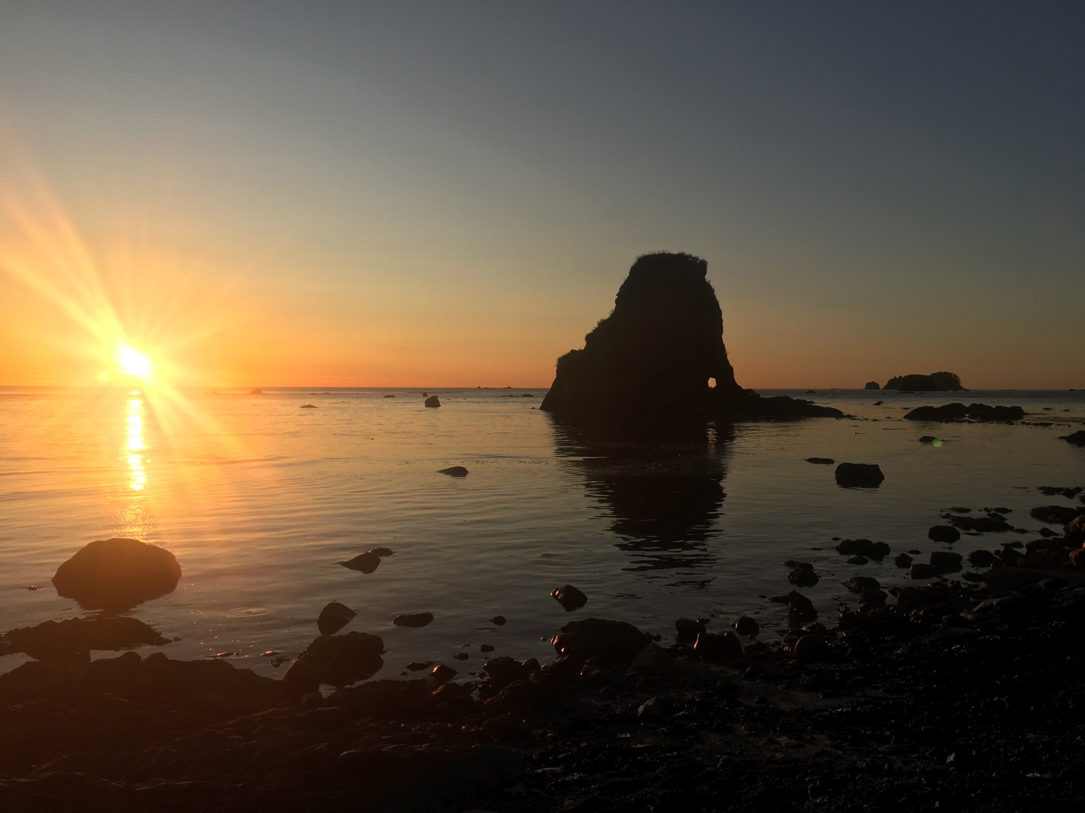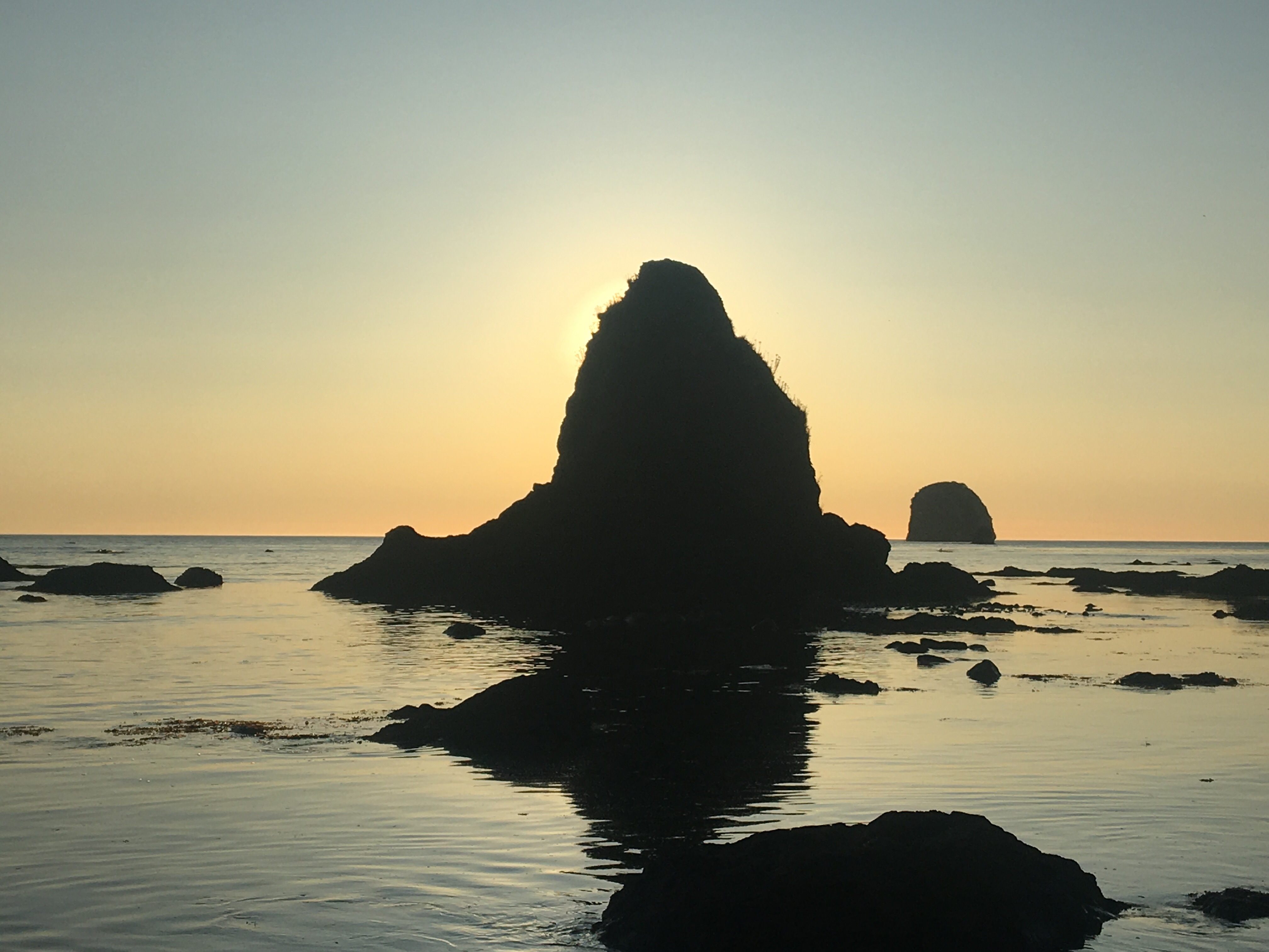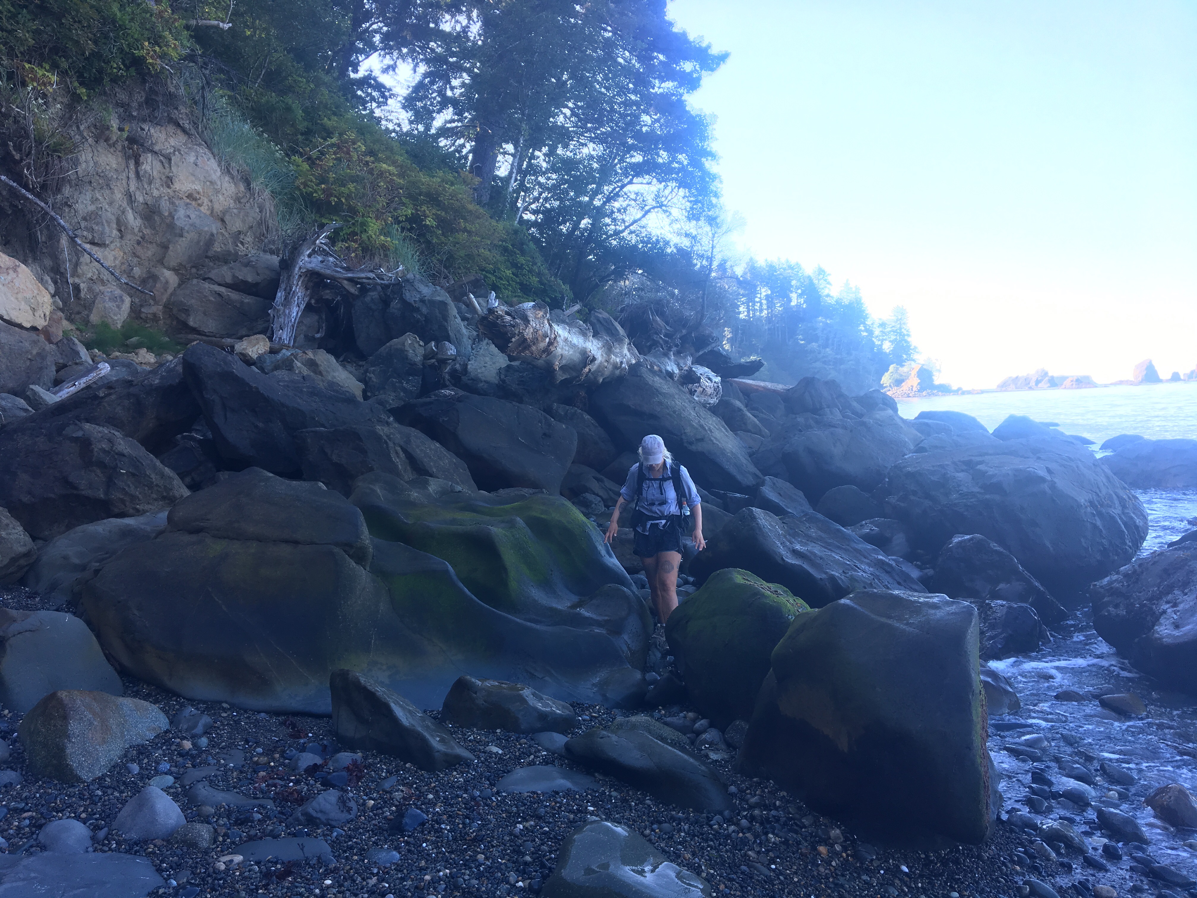 9/14 Today was a great day. I did a backpacking trip along this coast in the spring of ’14 and loved it. Since then I’ve always wanted to come back. Today we walked north for about 20 miles along beaches, tide pools, and rocky coastline. There’s a bunch of headlands that we had to get out and around which can be dangerous at high tide so using a tide chart and doing a little paying attention was important. In a few places we had to go inland a little bit and hike overland even using some ropes and in a couple places crawling through natural tunnels. The weather was absolutely perfect today, not a cloud in the sky with a cool ocean breeze once in awhile and warm enough to jump into the ocean for an afternoon dip. A few years ago when I was out here I saw a ton of bald and golden eagles. Although we only saw one bald eagle today, there were a bunch of other animal sightings. We saw two black bears at different times walking out on the coast eating seaweed or whatever. A few deer, 4 sea otters, a close encounter with a seal and a bunch of dead stuff that washed up on shore including an octopus, a seal, 2 sea lions, and some kind of shark or something. Around sunset we found ourselves a campsite in some woods next to the ocean. For the second night in a row I fell asleep to the sound of waves crashing against the shore.