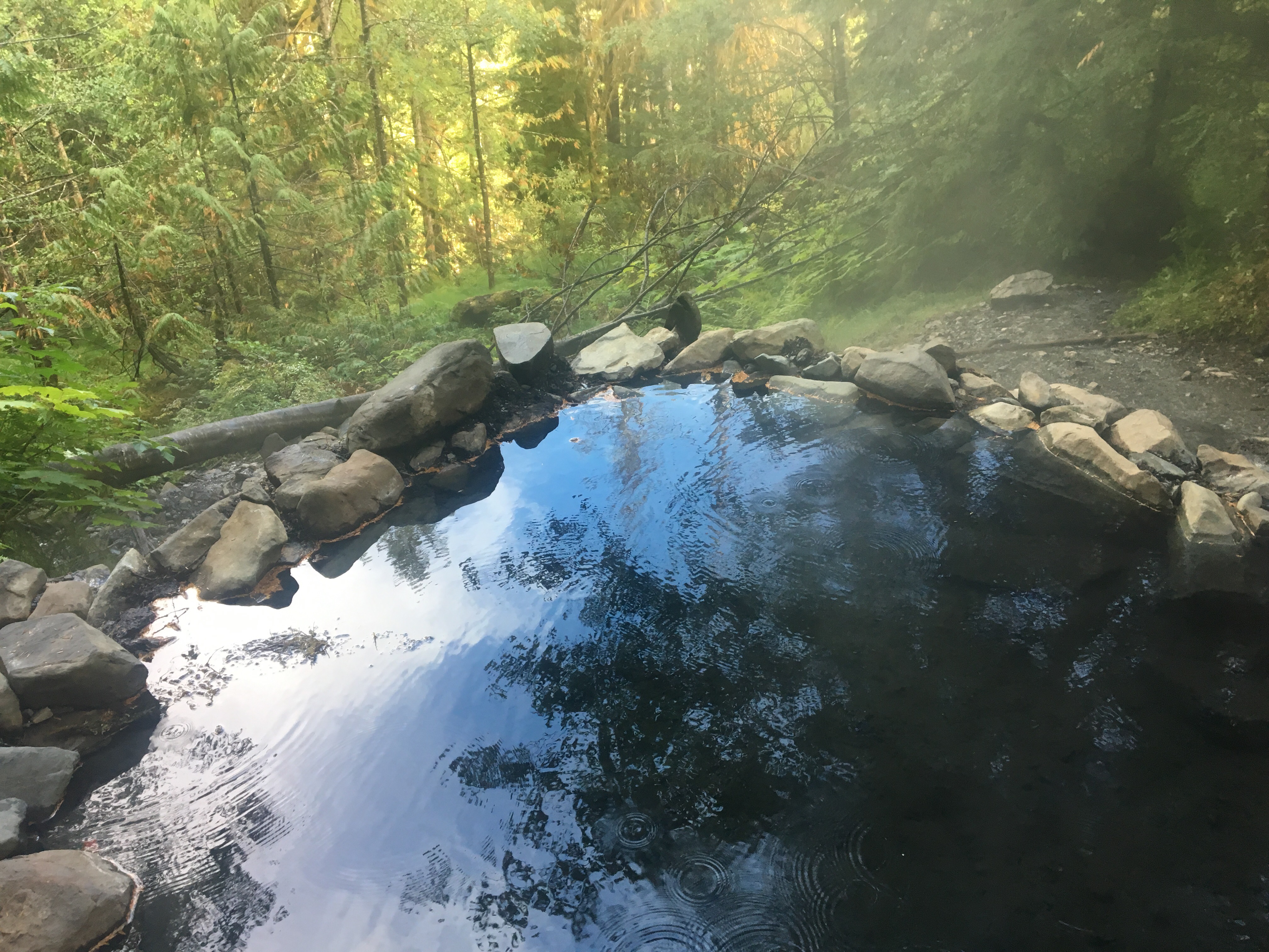 9/18 Overnight it rained and my tent didn’t do a great job keeping me dry. I was cold and didn’t sleep that well but I didn’t have much to do and was close to the hot springs so I could just go relax in those all day. It was really nice. A perfect day to just sit and soak in the warm sulfury smelling water. It’s only a 2 or 3 mile trail from a trailhead parking lot so besides the people that are camped at the Boulder Creek site, a fair amount of people just walk the short hike in from their cars. We met some cool people and had a lot of fun just doing nothing all day. I didn’t want to get out of the hot water and my hands and feet got so pruned up that I worried if they would ever go back to normal. We could have stayed another night but since everything was soaked we made a quick decision to pack up and walk out around 5pm. At the trailhead we got a hitch from a couple from Montana that brought us about a half hour to Port Angeles where we found a cheap motel for the night.