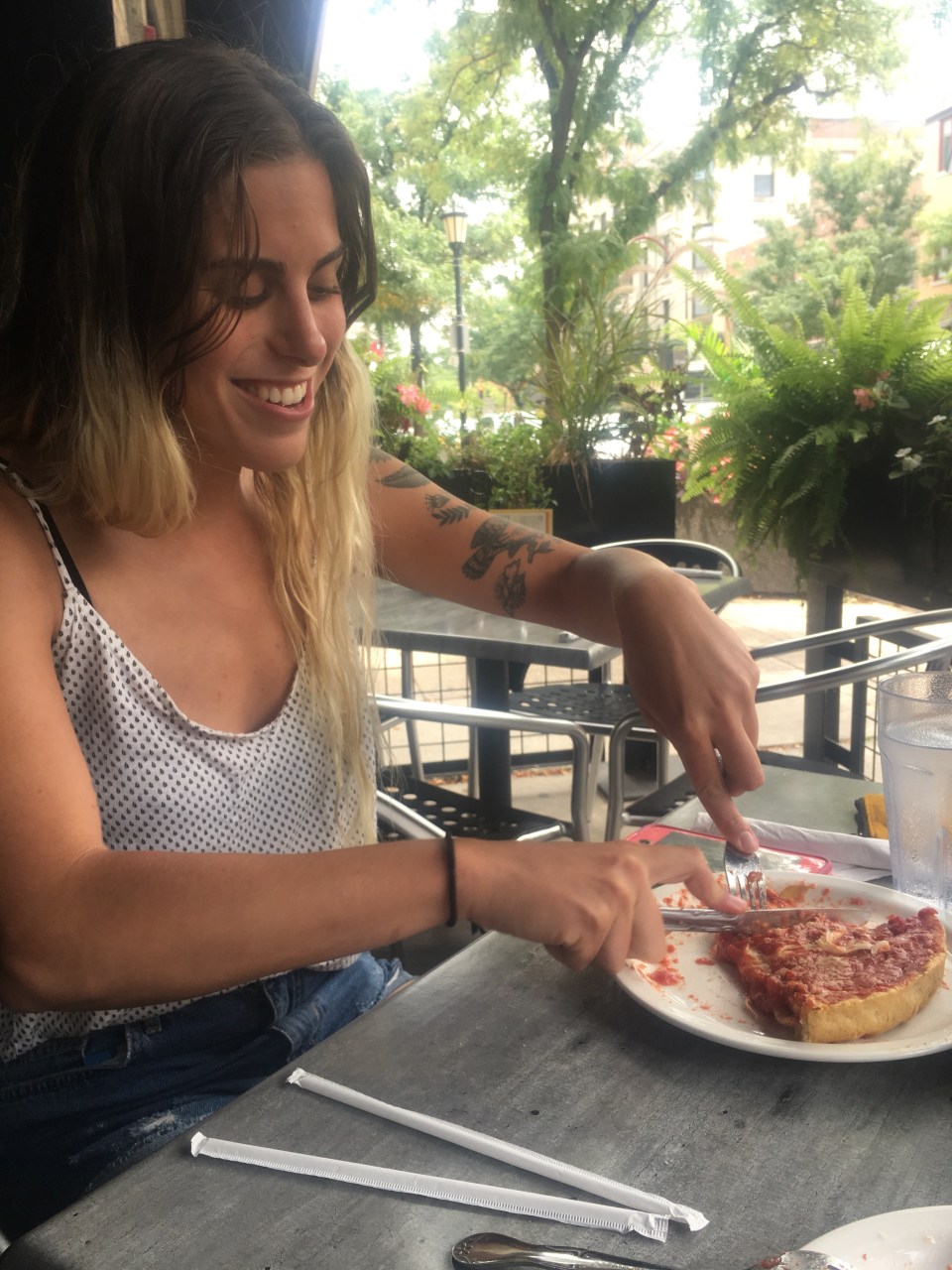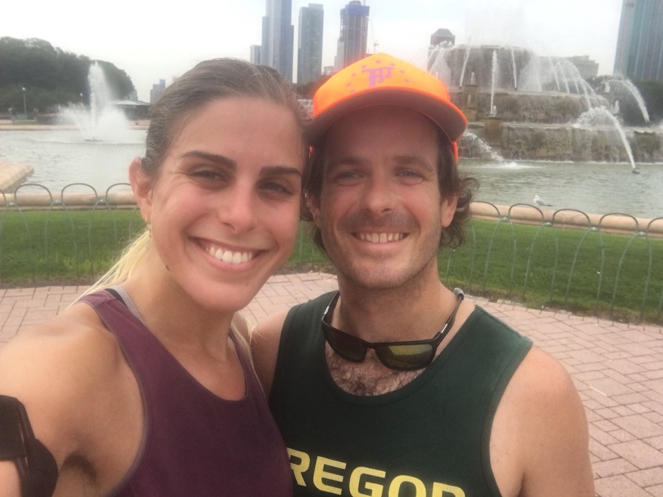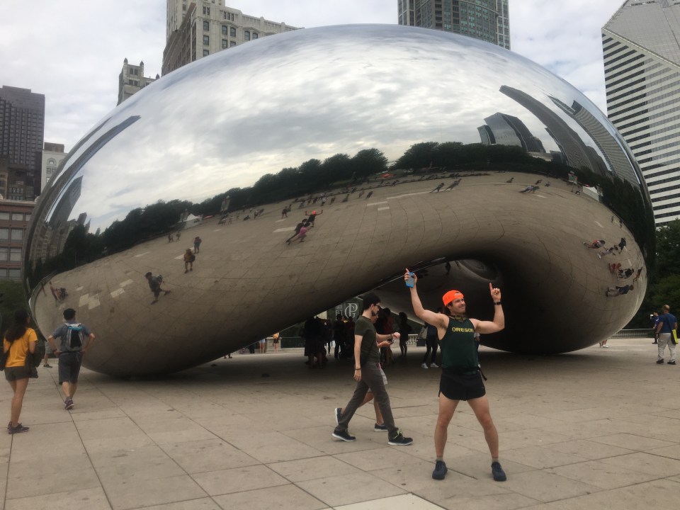I got some good sleep in that rest area and we didn’t have far to go today. Only a couple hundred miles to Rockford, IL, where we were staying with our friends Boone and Katie. Sara wanted to go for a run in Chicago so after getting out of Michigan and skimming through the NW corner of Indiana we were in the ‘Windy City’(not all that windy). We parked along Lake Michigan which looks more like an ocean and ran along the lake for awhile. After a few miles I recognized Buckingham Fountain from ‘Married with Children’ and after we saw that I wanted to go find the Bean. The Chicago Bean or ‘Cloud Gate’ is this huge sculpture in the middle of the city that serves as the backdrop for scores of dating app profiles. You’ve probably seen it. From the Bean we ran along the river walk then back along the Lake for awhile. There was a beach right near where we parked, perfect for a post run bath. After our bath we got some Chicago deep dish pizza of course. It was good and everything but it takes forever and you eat it with a knife and fork.