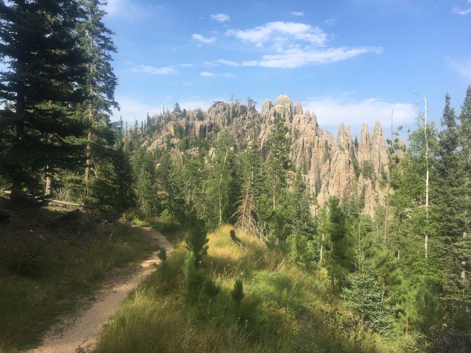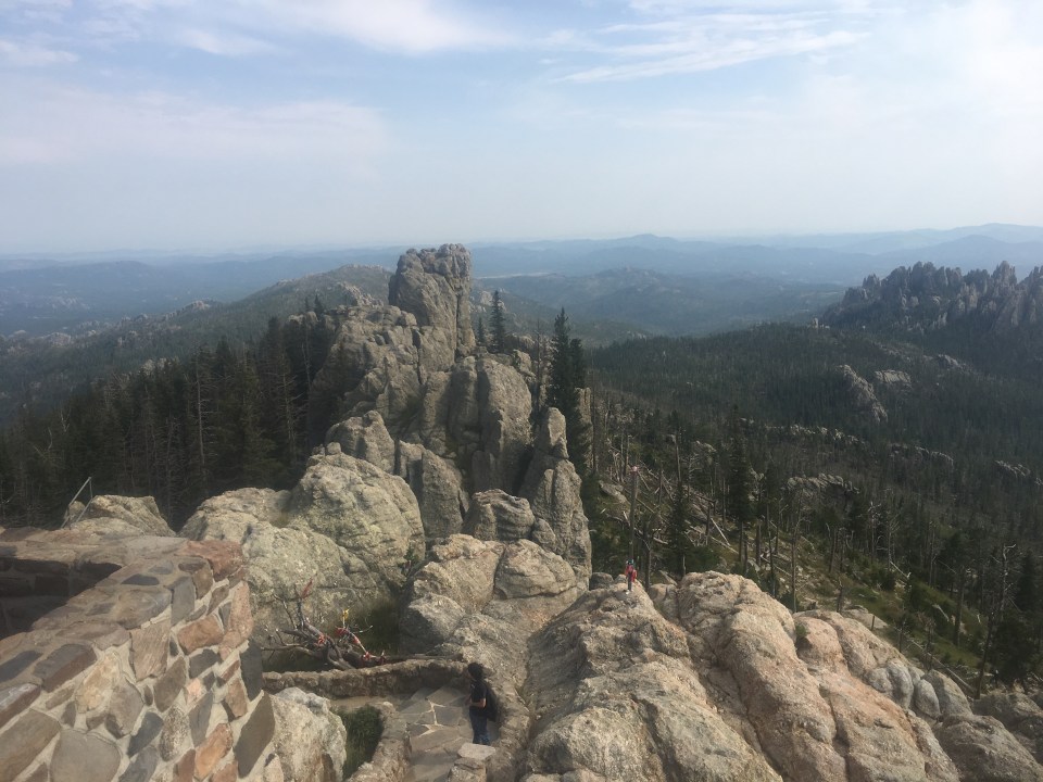 What a day! QB and I got up early and drove through the Badlands to the Fossil exhibit side of Castle Trailhead. Sunrise is a great time for this place, you can beat the crowds and the park looks amazing in the early morning hours. We ran out about 5-6 miles on the Castle Trail and back on the Medicine Root Trail. It was sweet! Awesome views and some nice easy flat trails. After our run we took our time driving out of the park stopping at a bunch of the scenic overlooks and stuff. Once we were back on the Interstate we stopped at the world famous Wall Drug. This place is advertised on billboards for hundreds of miles and I was excited about it, Sara however, was not impressed. It’s like miniature town or a giant gift shop, I thought it was cool. Further West we stopped at Mt Rushmore. A bit of a let down. I had wanted to see this for awhile but it just didn’t really do it for me, I think it would have been cooler if they just left the mountain alone. I wasn’t really bummed out or anything but Sara bought me an ice cream to spike my tone a little. Not far from Mt Rushmore was Custer State Park and that place had it going on! We parked there and did a run/hike up South Dakota’s High Point, Black Elk Peak. This is a relatively easy climb with rewarding views at the top. I highly recommend it. After we ran down we jumped into Sylvan Lake and took somewhat of a bath in its chilly waters.