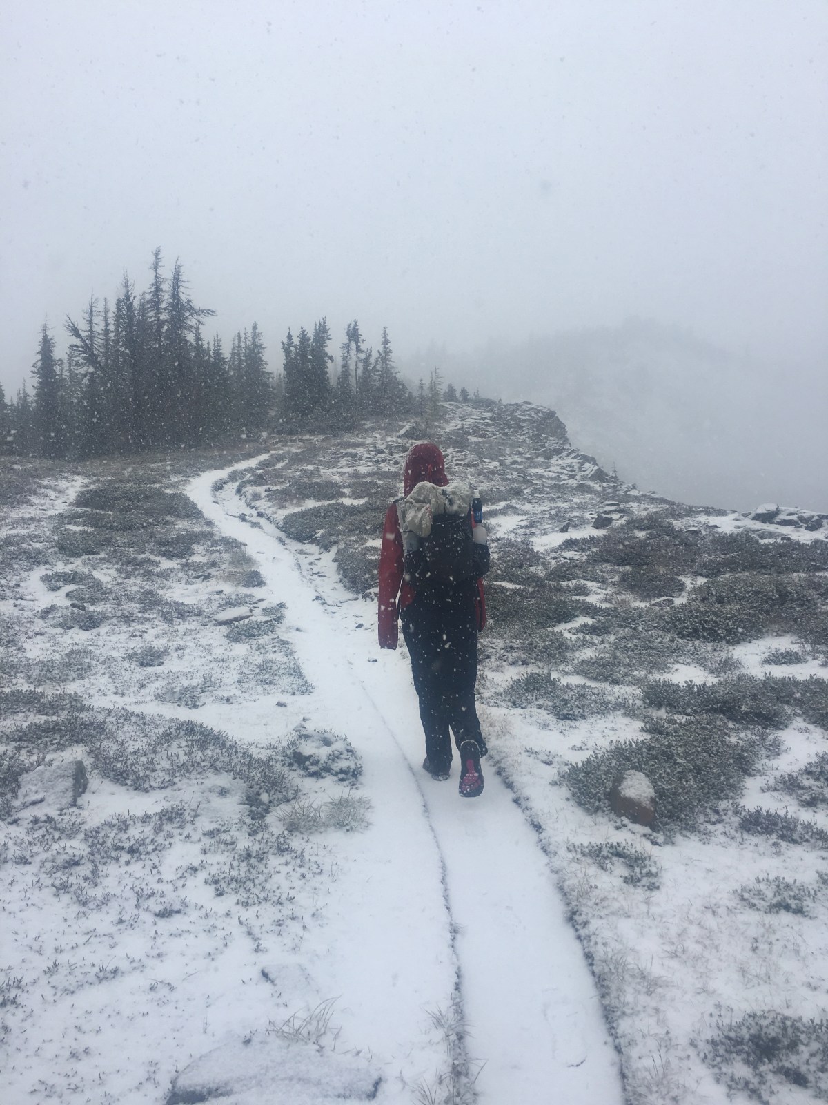 When we got up to Cutthroat Pass we were treated to spectacular views then it immediately started snowing on us, I didn’t even think it was cold enough. We would be above tree line for the next 5 miles so this wasn’t good. Luckily it stopped after 20 minutes and the rest of the day was just enjoyable and scenic Washington hiking.