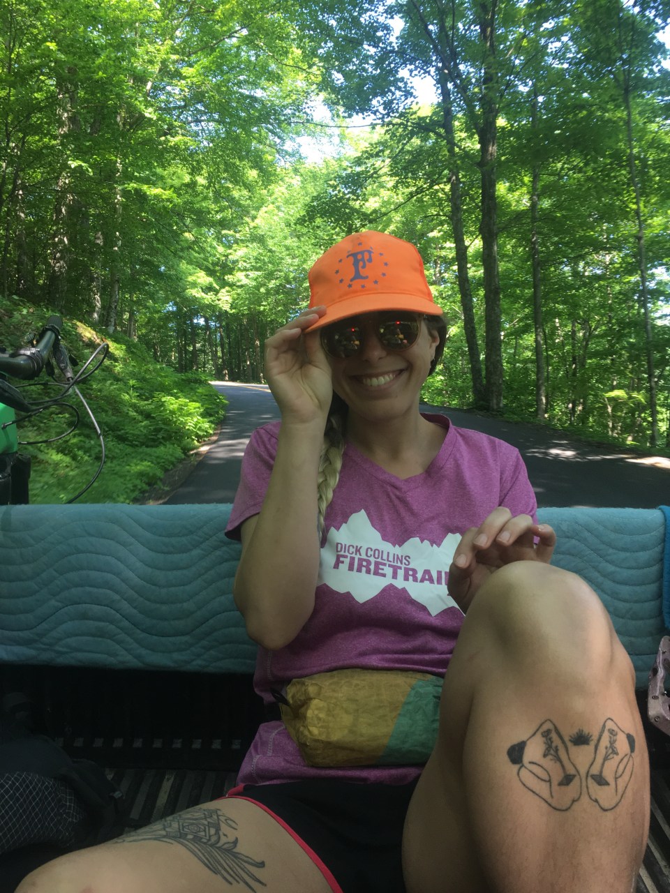 This morning we rolled out of bed/car a little later than normal, got packed up, and put our thumbs out. Immediately we got picked up by a nice couple in a pickup truck who were headed down to Killington to mountain bike for the day. We hopped in the back with the bikes and enjoyed a nice sunny ride through Vermont for the next hour. We picked up some last minute necessities(candy bars and chips) at a gas station then quickly got a ride up the hill to Sherburne Pass where we ate lunch at the Inn at the Long Trail (QB says get the Nachos!).