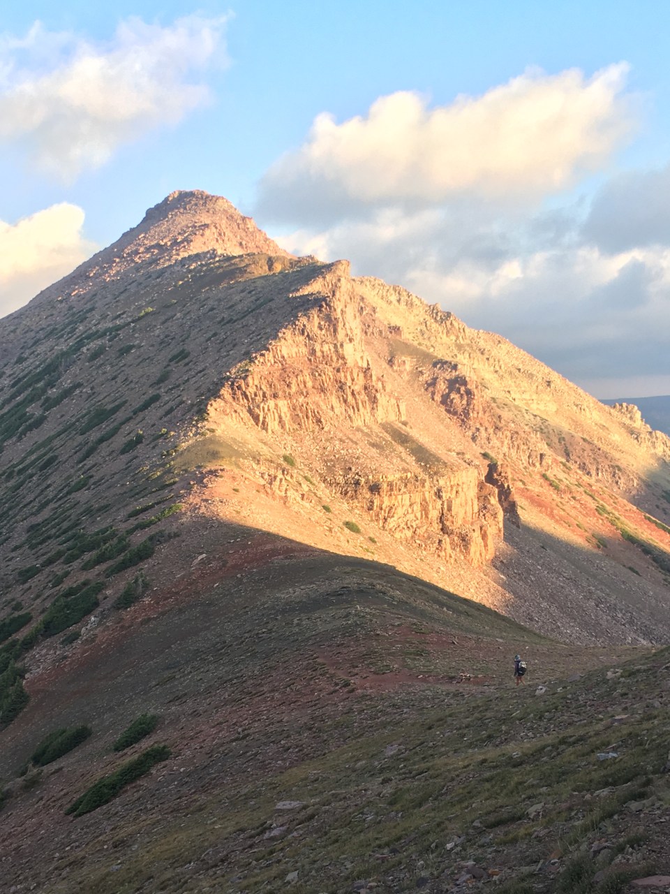 As we dropped down into the valley full of domestic sheep, the sun finally started to warm us up. We crossed this forested valley and started up Dead Horse which was said to be the crux of the whole trail. It was definitely steep and at times maybe a little sketchy but it really wasn’t all that bad just wicked steep switchbacks up the side of a mountain. It was all walkable, actually at no point during this whole Uinta Highline Trail has anything been more than class 1 walking.