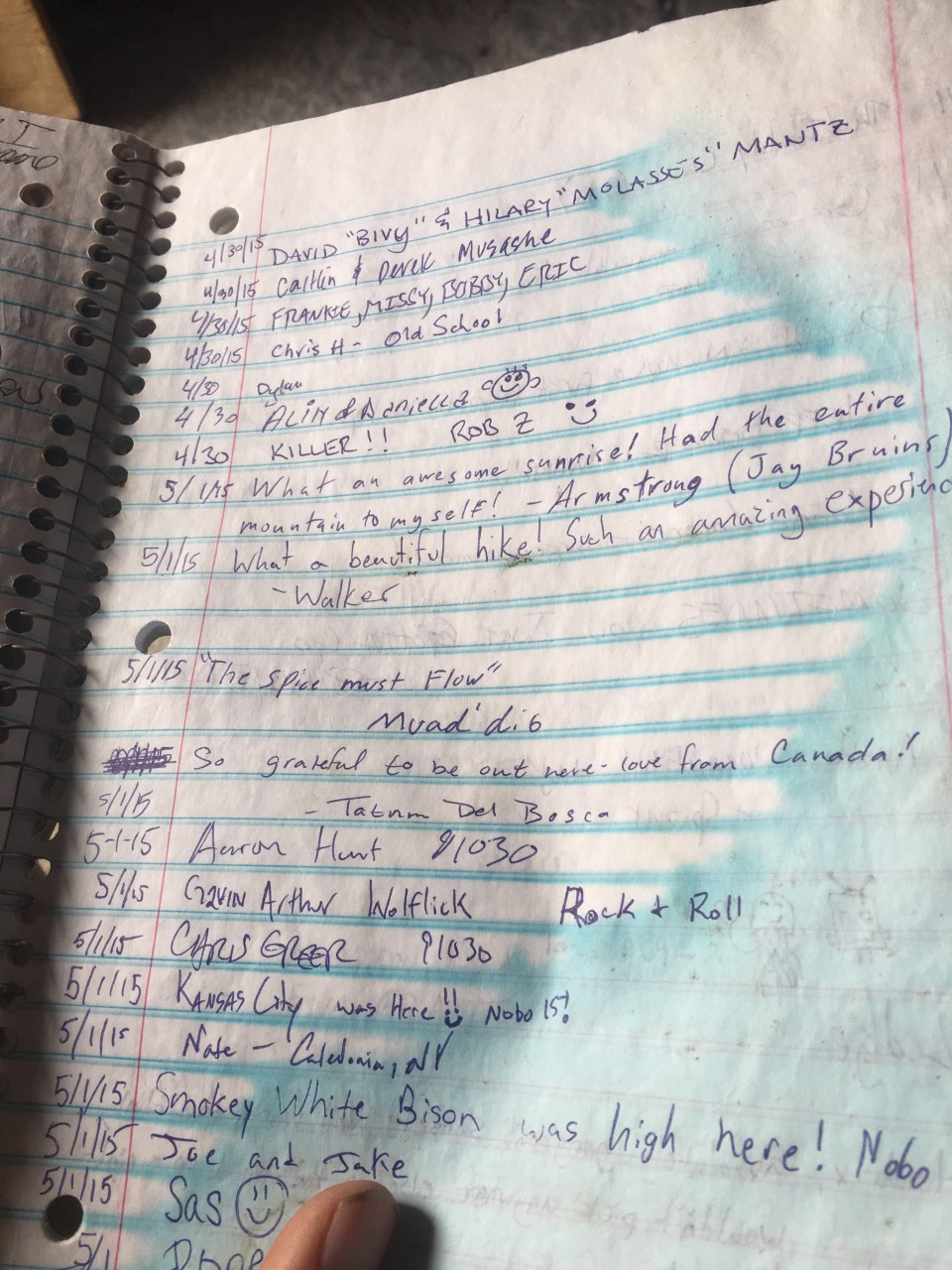 In 2015 QB and I both hiked the PCT and although that trail doesn’t quite go over San Jacinto it’s very close by and a popular alternate for thru hikers. When we reached the stone hut near the top we went in, signed the register and were surprised to find all kinds of old trail logs. It was so much fun to look through and see all these names of people hiked with that year. QB must have been in either too much of a hurry or too stealthy to sign because we couldn’t find her name. Shortly beyond the summit hut was the peak itself that had some awesome views down into the desert. We spent a few minutes up there then retreated the 6 pleasant miles back to long valley and the tram(you didn’t hear it from me but word on the mountain is they don’t charge on the way down). It was just before sunset when we got to the bottom of the tram and we still had to get down and around a few miles back into the city and our rental car. We put our thumbs out and got picked up by Rex and Steve in a Tesla! A Tesla for crying out loud! This was a very classy way to end our hike. After getting back to our truck we stopped for burritos then drove a couple hours north and found a place in the desert to spend the night.