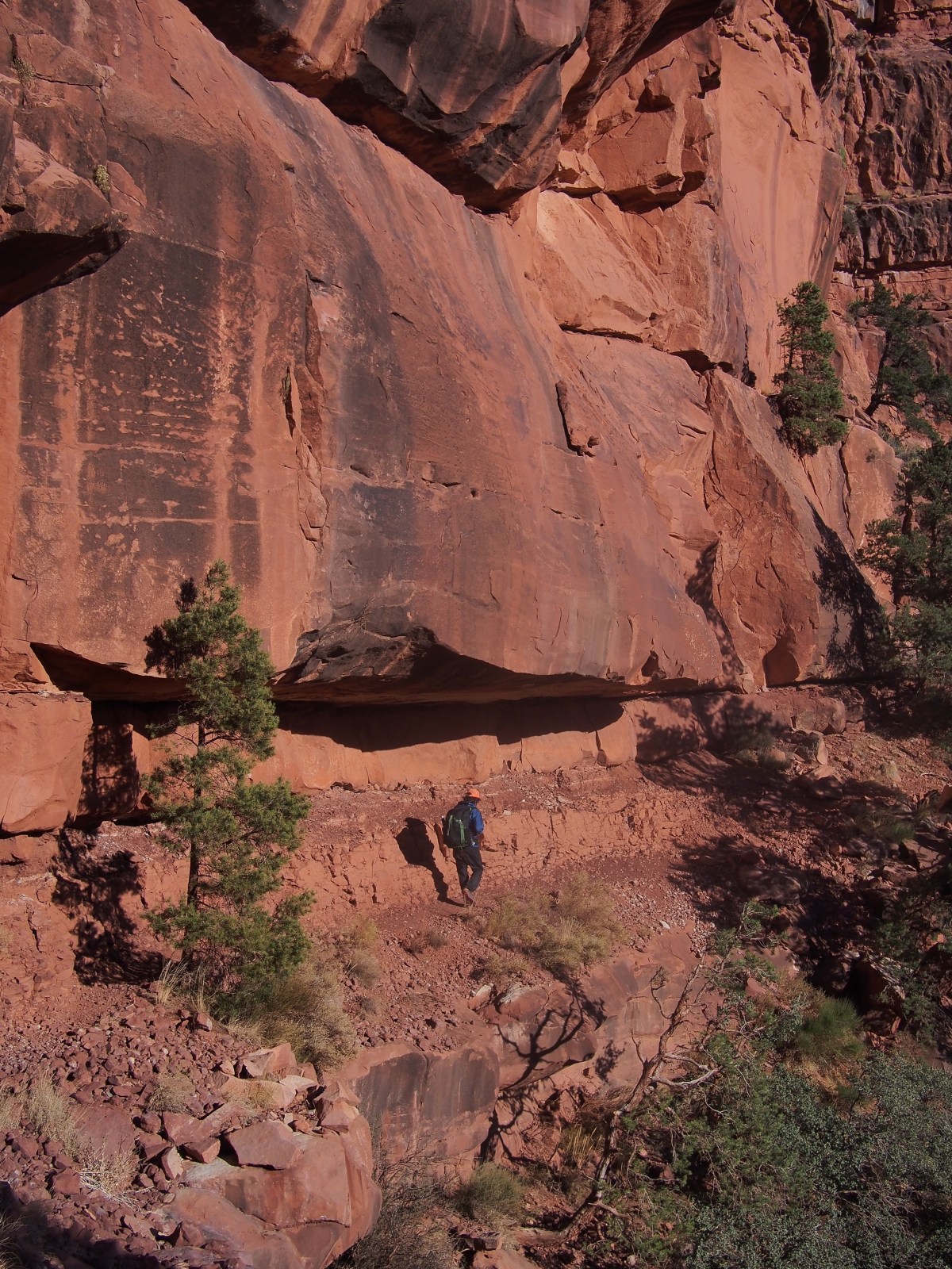 I have been thinking about the Nankoweap Trail for about a month now and it’s been keeping me up at night. It looked really scary and parts of it were really scary. There’s trail the whole way and for the most part it was decent but at times it gets quite narrow and a false step would drop me thousands of feet to the canyon floor. It was pretty but it was scary. I’ve hiked on gnarlier terrain before but I guess I built this up in my head and it lived up to the hype. Eventually we got through the high exposure stuff and we really started to descend, something like 5500 feet in a slow going 8 miles from the rim. We got to Nankoweap Creek in the dark and set up camp. I feel very relieved to be down here in the Canyon in the relative warmth of the lower altitude and with the wild and wooly Nankoweap Trail in my rear view mirror.