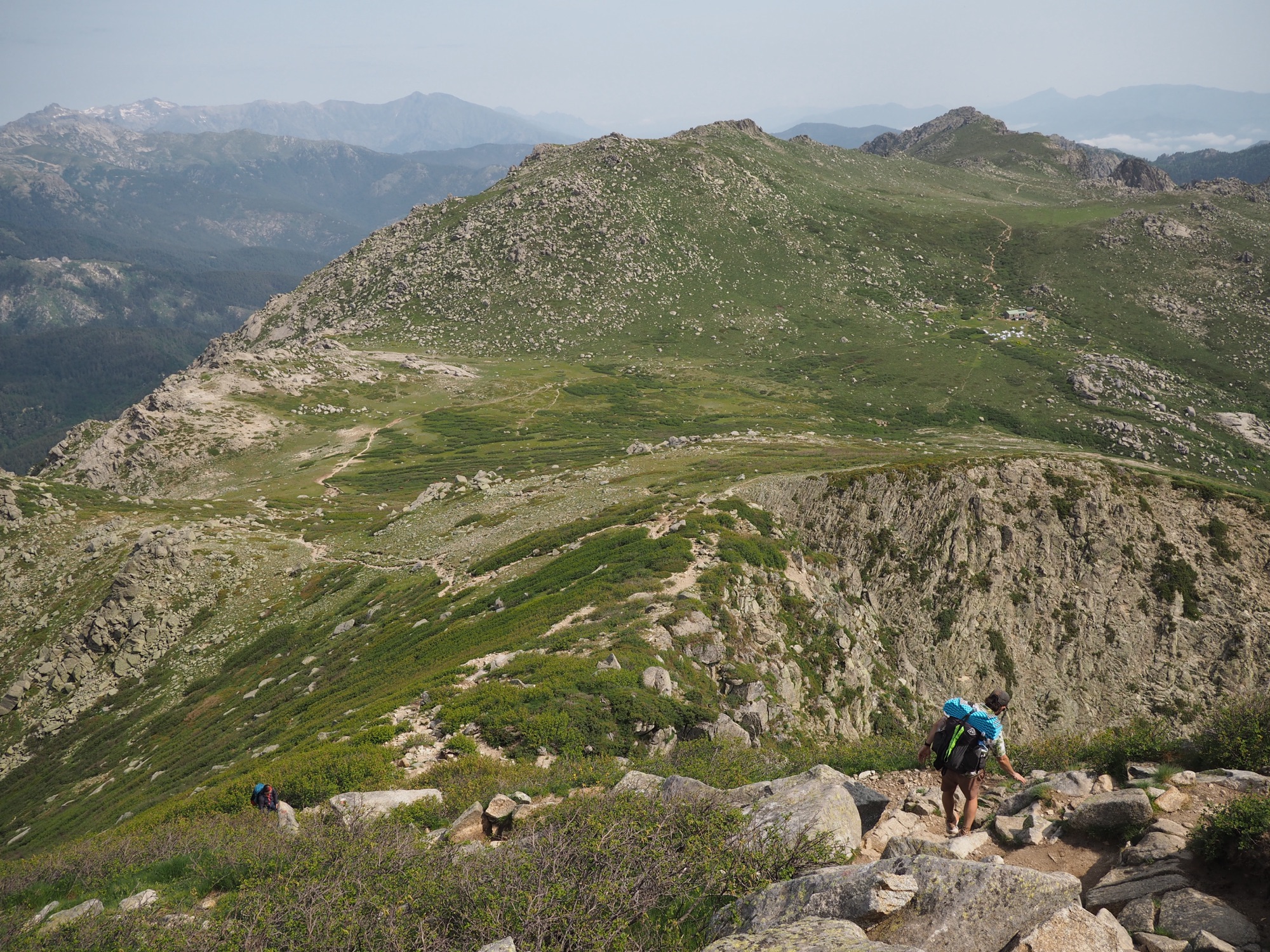 We ate a few snacks at refuge d’Asinau then began a rigorous climb up Monte Incudine. It was seriously difficult, has me doubting a bit if we can complete this thing in the time we gave ourselves, especially since everyone is warning us the north is supposed to be more difficult. After the peak we had some cruiser downhill and then some pleasant miles through something of a plateau. I spooked a wild boar, never seen one before. I know they’re out here because wild boar stew is a famous Corsican dish but not sure how rare they are-I’ll let you know in a few days.