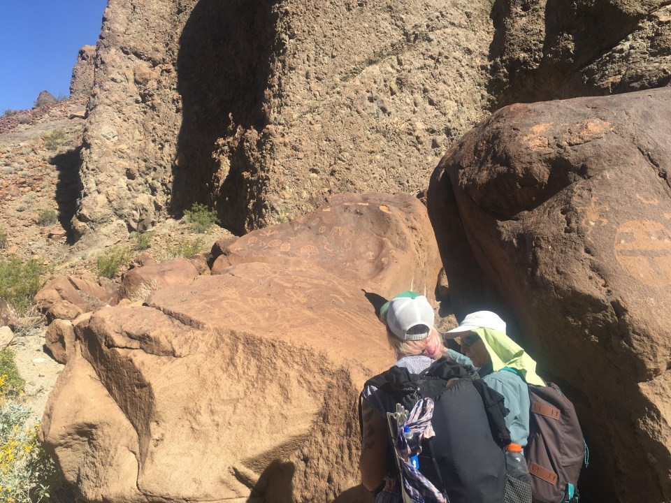 Today started off ordinarily enough. We walked up canyon about a mile to Showerbath Spring which created an amazing hanging garden and I had to resist the urge to strip down and take a shower. The walking became easier in the canyon after the spring and shortly after that the creek all but dried up for awhile(it would be intermittent the next 10 miles so we stocked up on water when we could). Eventually we crossed the boundary of GCNP into BLM land and as we walked the canyon became wider and the walls got shorter. We saw bighorn sheep running across impossibly narrow ledges and amazingly saw not only a bald eagle but a California condor! The thing looked like a pterodactyl.