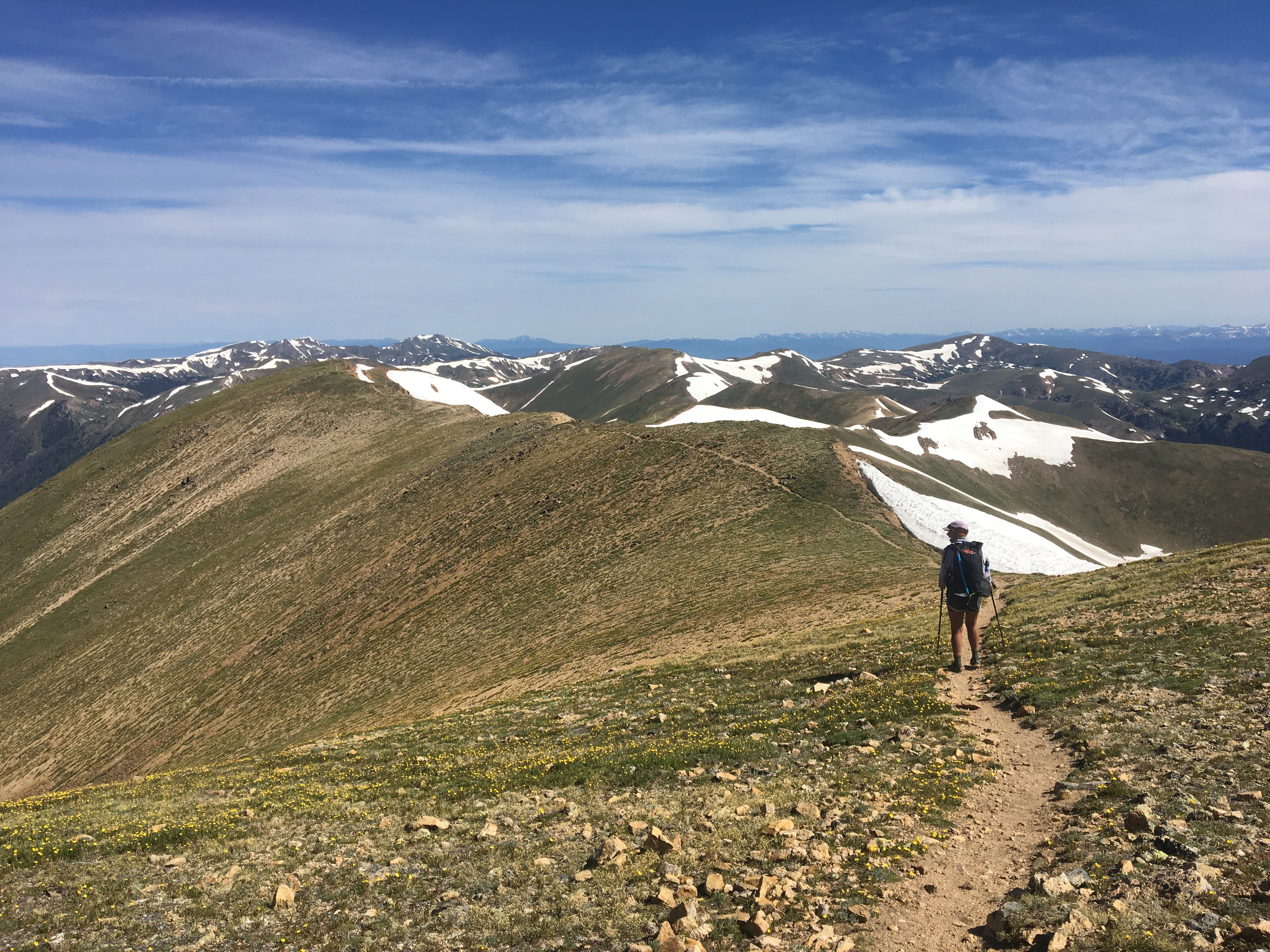 The trail was mostly up above treeline all morning and we passed the Colorado Trail High Point at 13,271 feet. We saw half a dozen CT hikers traveling south including my friend Lexy who I hiked some of Virginia with on the AT in ‘16. When we got to the road we all had every intention of hitching but a CT hiker, Quincy, had called for a shuttle and when split 5 ways it was pretty cheap. Worth it not to wait around for a car.