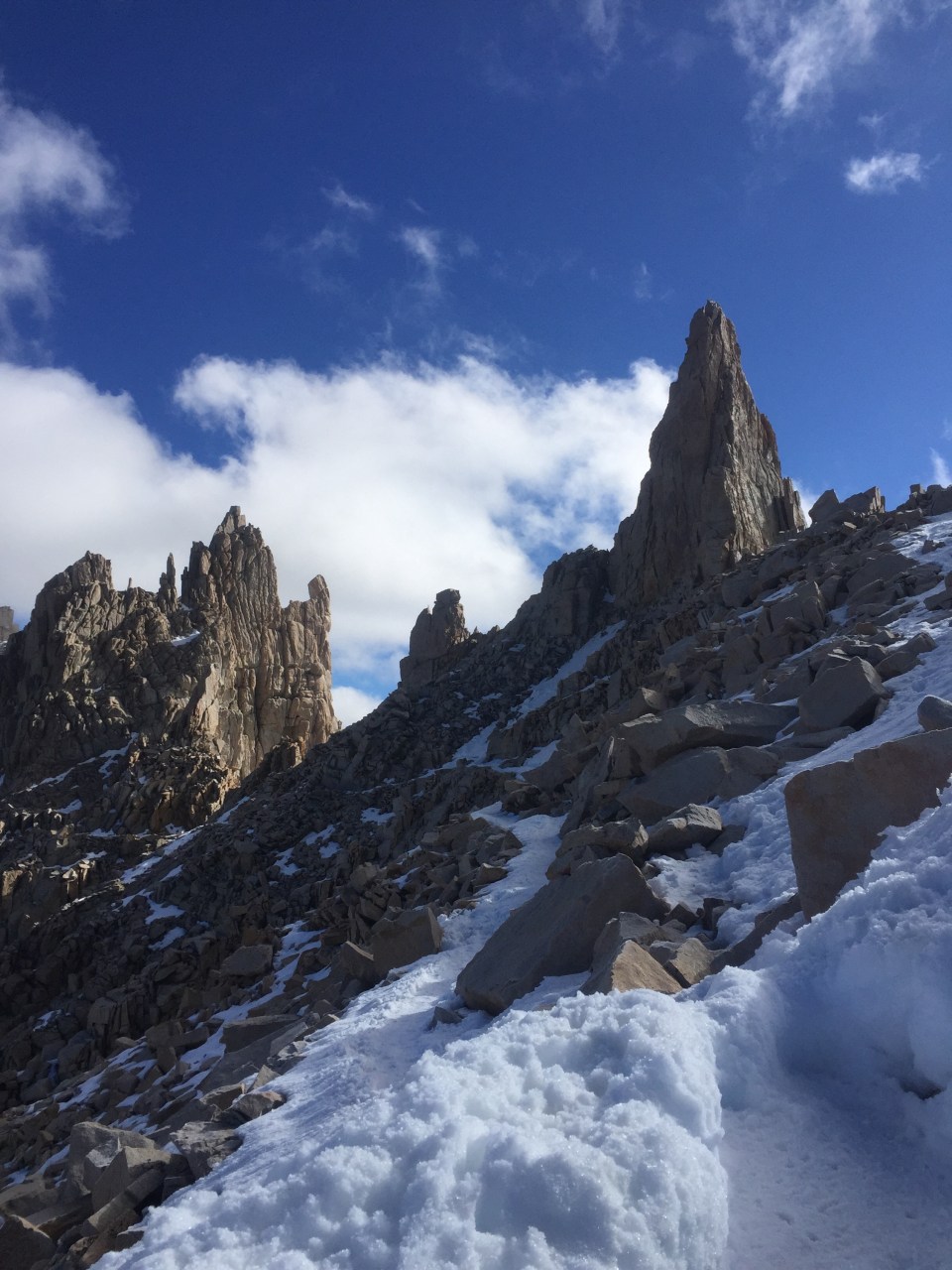 After the greatest breakfast of all time at Alabama Hills Cafe, Boone and I got a ride back up to the trail and pretty much just killed it all day to catch up to our friends. Boone is tough to miss on the trail. He pushes a furious pace while making purple women’s running shorts fashionable and wears a big yellow beard like he’s flying some kind of hiker trash flag. When we caught up to our friends they were at the base of Mt. Whitney and were planning to leave at 1am to get to the top for sunrise. Women thrive on the PCT and Prickly Pear, S+M, Tami and Schemes are no exception. This is arguably the greatest collection of badass female hikers on the trail this year. At least that I’ve come across. I could have joined them for the super early start but decided to go later, not because I was scared of the cold or anything, because I wasn’t.