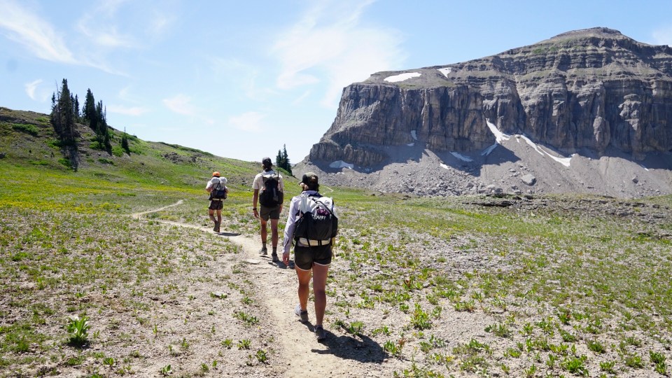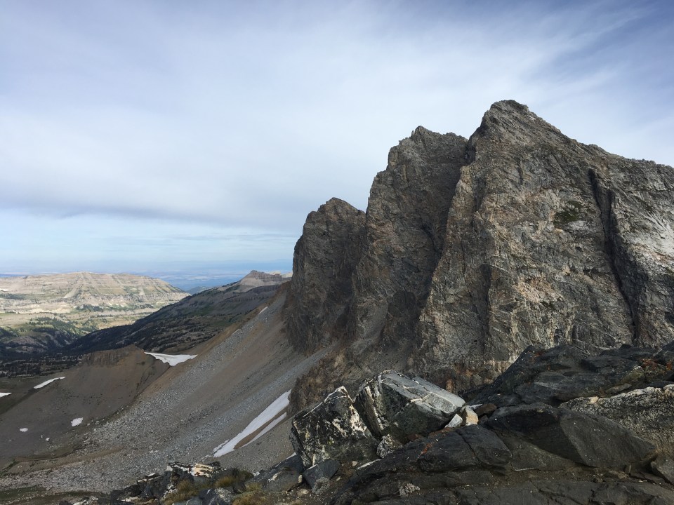 From North Pole Pass we dropped into a pretty forested valley that we were able to cruise through for most of the day. After lunch we noticed the air was starting to get hazy and I got a whiff of smoke. Dang wildfires! It would have been a beautiful day had it not been for the smoke, and now it was hard to tell if we had blue skies or clouds rolling in. We got to the base of Anderson Pass and the air quality hadn’t improved but we climbed up anyway. This was about a 3 mile climb that gained roughly 1500 feet bringing us to the highest point of the trail, 12,700 feet. At the top of the pass we had the option of climbing up steep talus to our left for another 500 vertical feet to the summit of King’s Peak, the highest point in the state of Utah. This would have been nice but the smoke really hampered visibility and it looked as if the summit was about to be socked in with clouds. Plus it was around 4:30 and bad form to summit so late in the day, right? We’ll have to come back and climb this one, the state high points aren’t all that important to me.