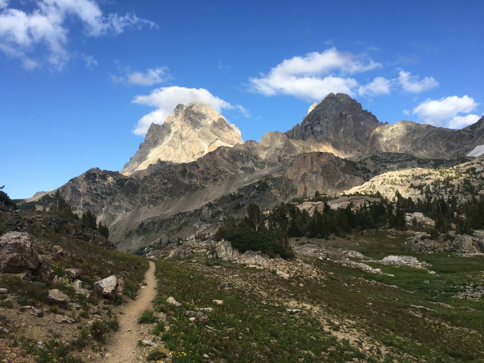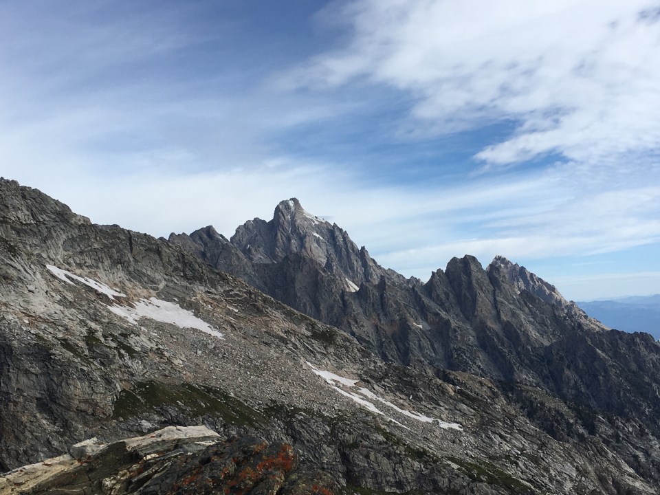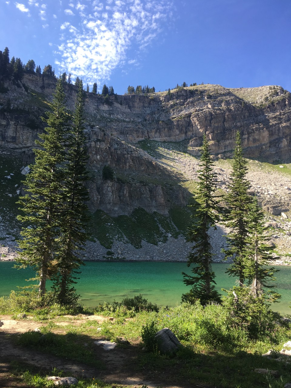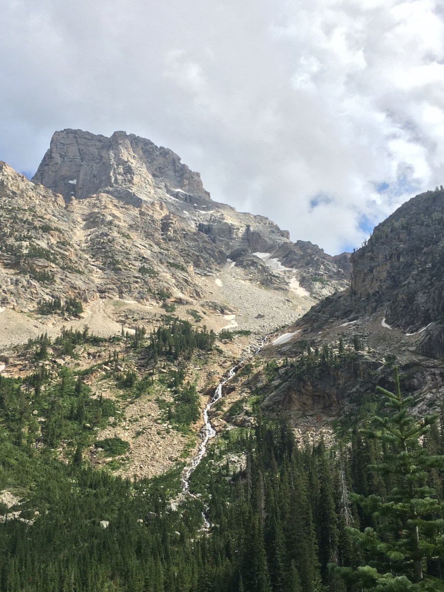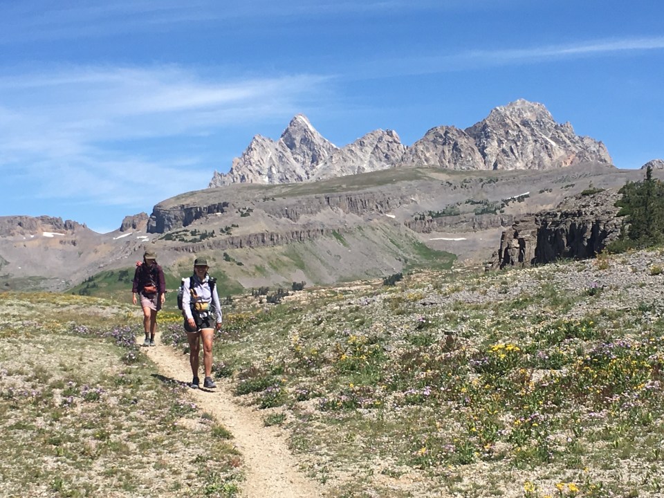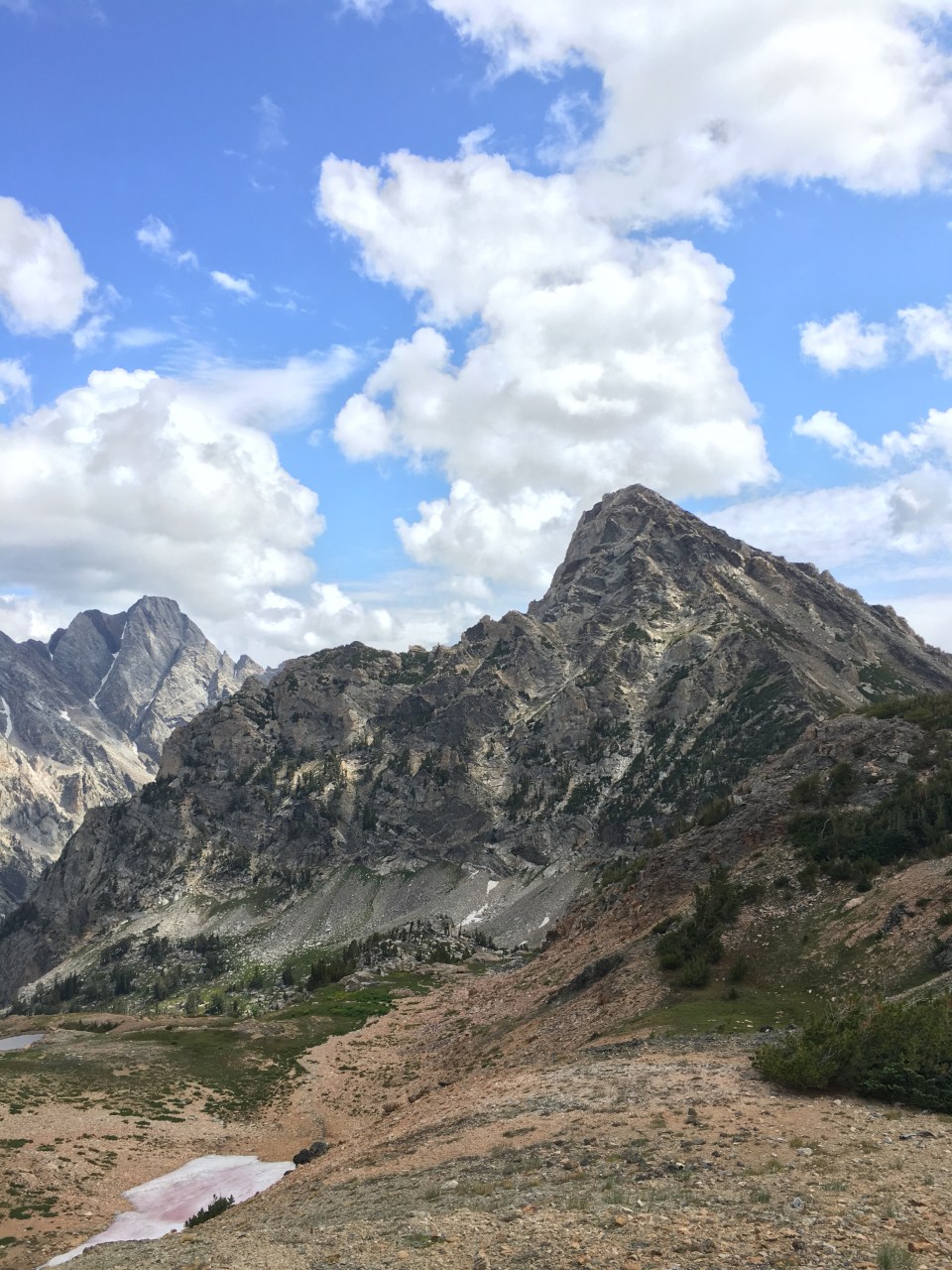 Eventually we got to the top of Hurricane Pass and then crossed the boundary of the park into Jedediah Smith National Forest. Since there were no permits within the park we’re camping here tonight in the Alaska Basin by Sunset Lake.