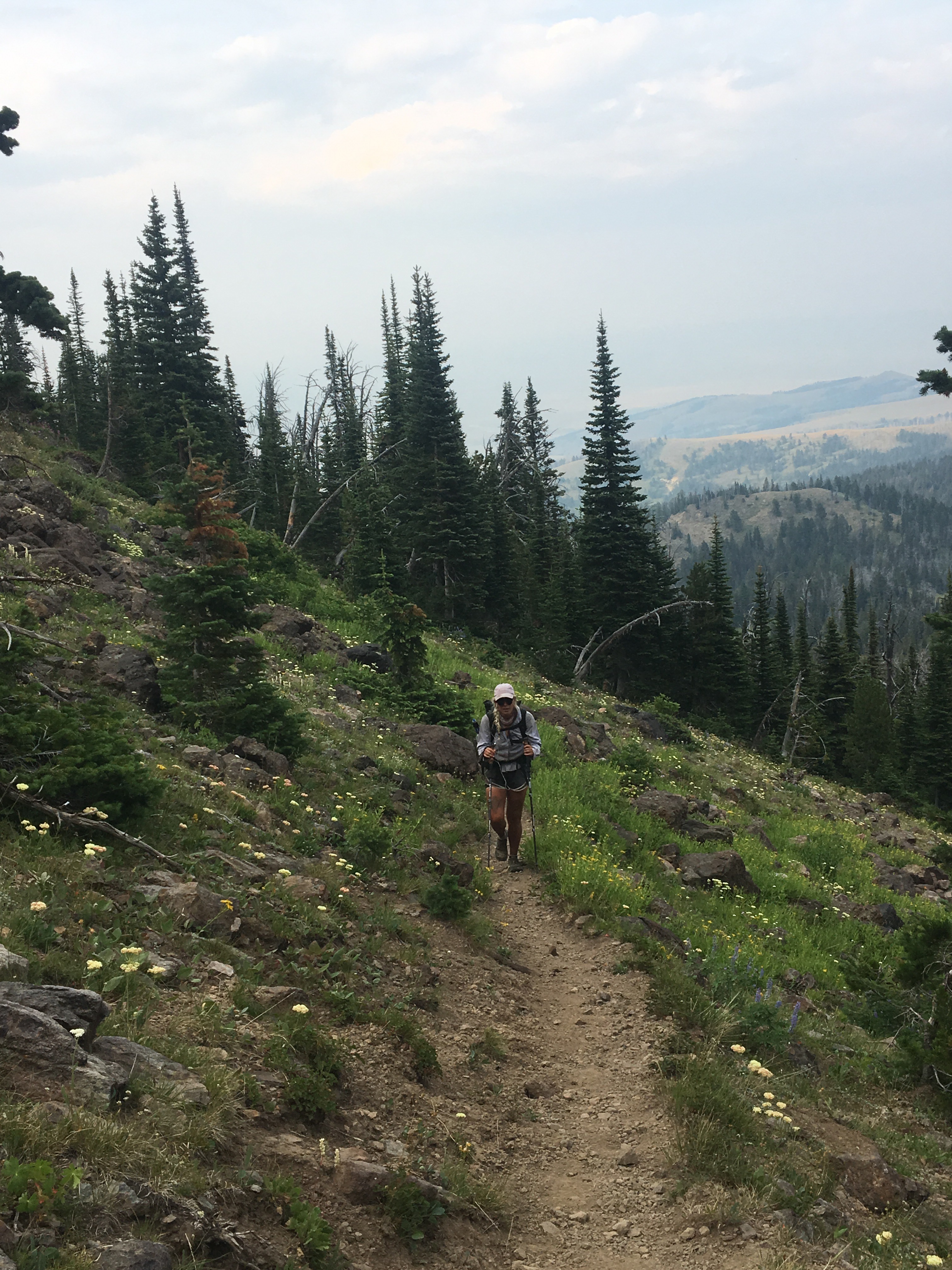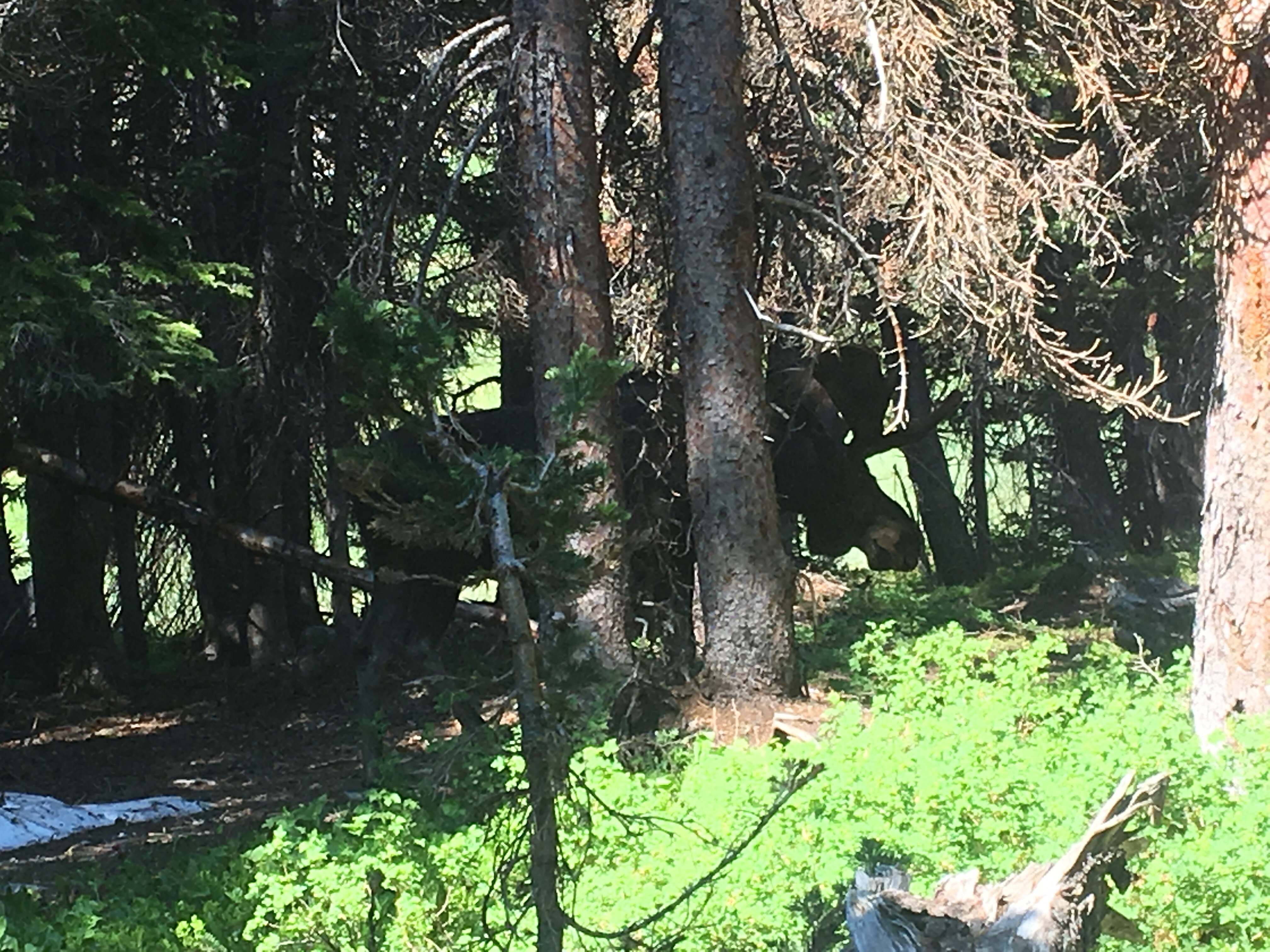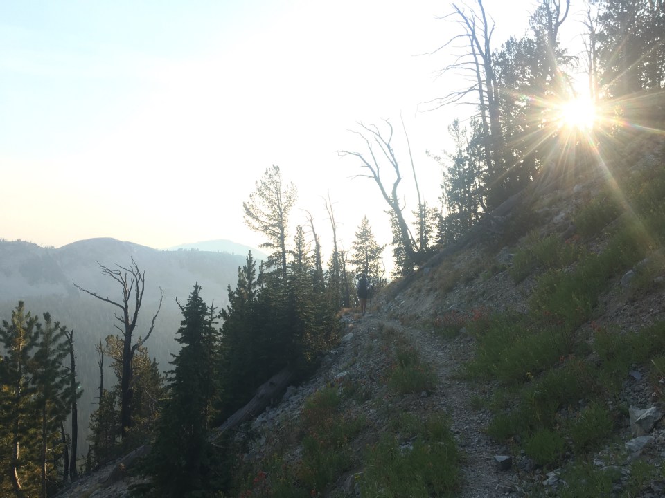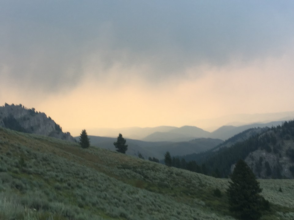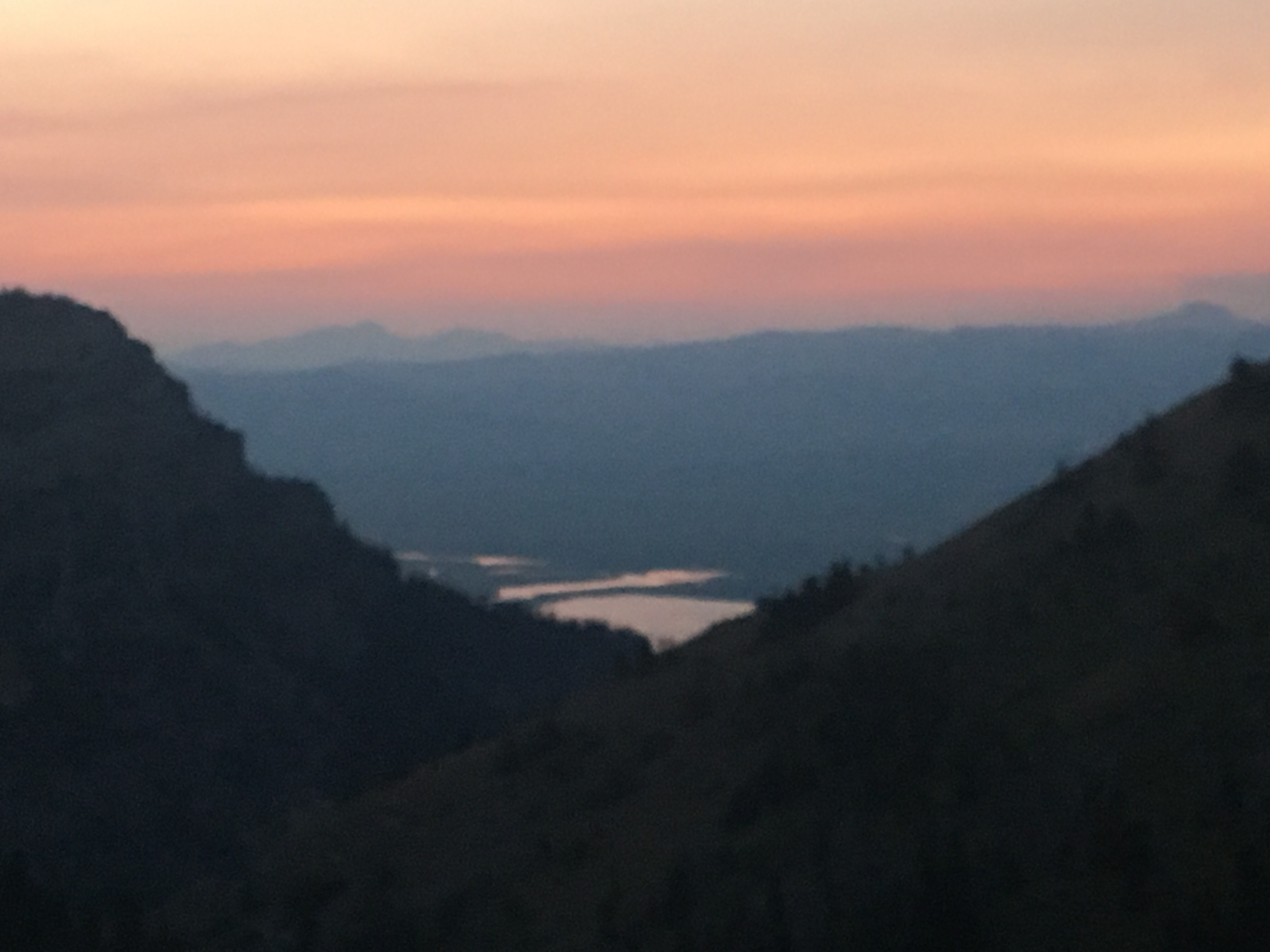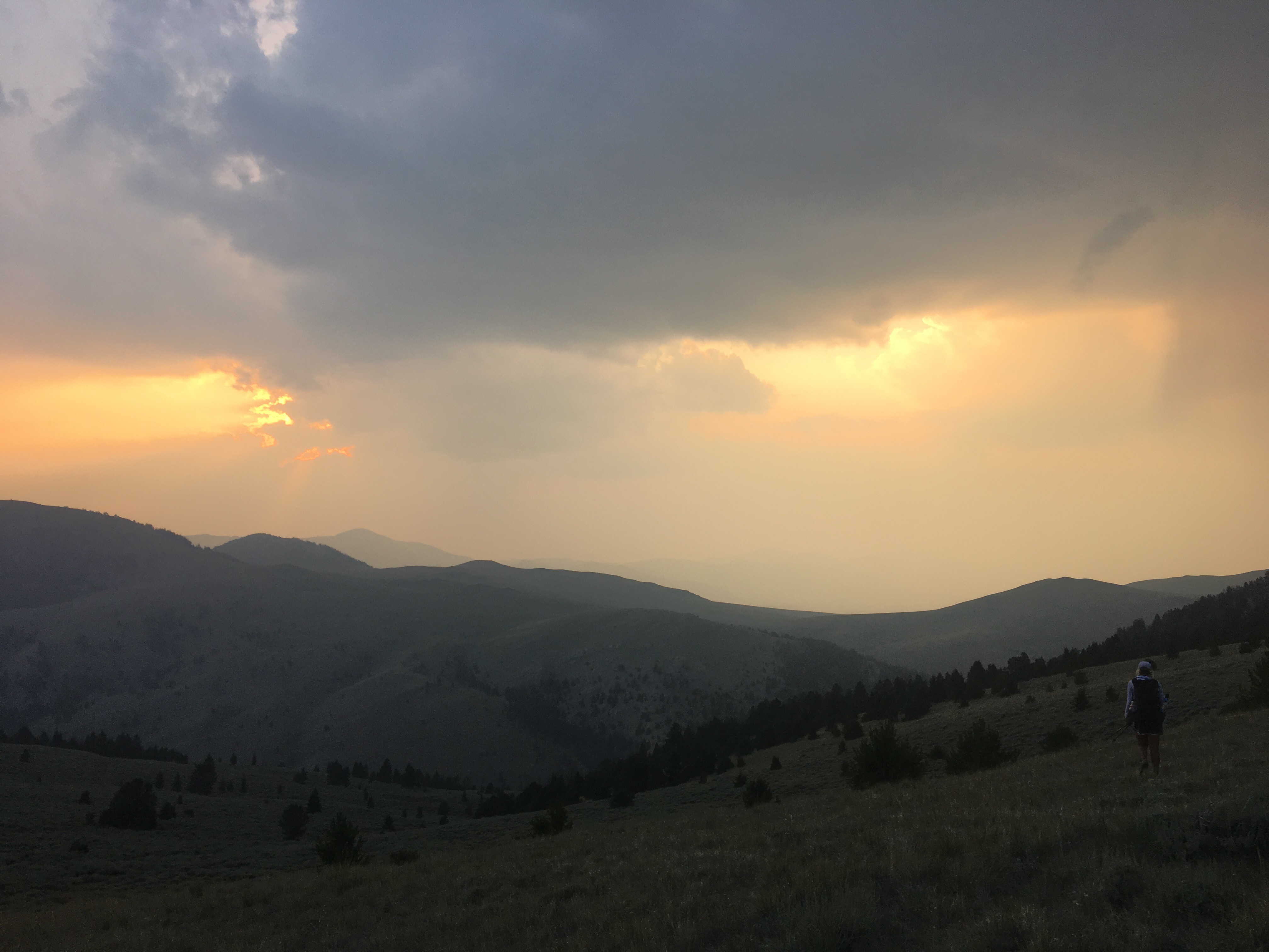 Right away this morning QB and I devoured a huge breakfast at the Two Medicine Grill; omelettes, pancakes, hash browns, even a slice of pie. After breakfast we got back on trail and into Glacier NP starting with a nice stiff climb up to Scenic Point. For a while we walked with Recalculating, who unlike most thru hikers has a wife and 4 young kids at home, pretty awesome situation but not the norm out here. Glacier has been incredible so far, even with a blanket of smoke from the wildfires hanging in the air. I’d love to see this place on clear bluebird days so that’s why I’ll definitely have to come back. The smoke however, puts a whole new paint job on things and makes the mountains and the lakes look really cool. I’ll let the pictures below speak for themselves. Plus I saw a bunch of animals, a moose laying around in the grass and probably about 25 bighorn sheep including a little baby. We’re camping at the Atlantic Creek site and also camping here tonight are Garbelly and Critter who we’ve been keeping in touch with but haven’t seen since Winter Park.