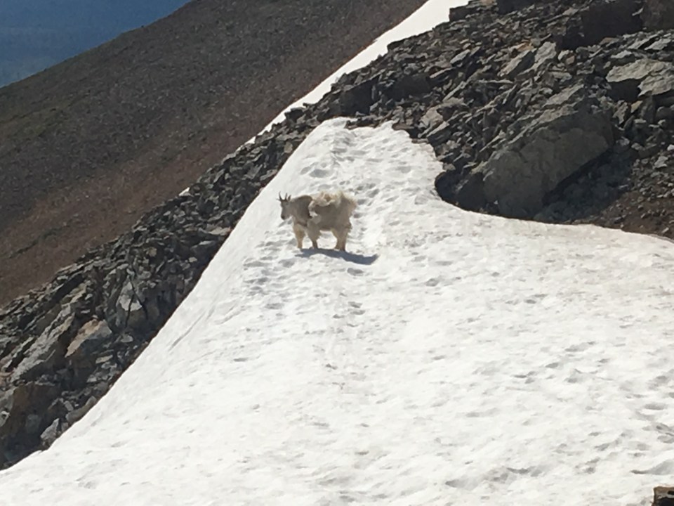 Today was the day! We hiked with Critter and Garbelly for most of the day and started off with a steep climb up to Triple Divide Pass. Although smoky, this was one of the most incredible passes I’ve ever been up and over. There’s three sides to Triple Divide Peak (just to the West of where we crossed); any water that lands on the west flows to the Pacific, water landing on the east flows to the Atlantic and water landing on the north flows to the Arctic Ocean. So cool! While climbing up the Pass, Critter spotted a moose down in the valley from at least a half mile away, then we had a bighorn sheep directly in front of us on trail and on our way down we saw 4 mountain goats way up on the side of a steep wall. The rest of the day the trail was pretty relaxed but there was lots of water. We stopped to jump off rocks into an awesome swimming hole at Red Eagle Creek. In the afternoon we walked along Lake St Mary which was tough to get a good view of because it was super smoky but it’s obviously a spectacular sight. I got another chance to swim at the bottom of Virginia Falls then we stopped again at St Mary Falls. Because of the wildfire situation, QB and I weren’t able to get our backcountry permits so tonight we had to hitch to Rising Sun CG where we’re camping at the hiker walk-in site. Ideally we wanted to camp in the backcountry for our last couple nights on trail but it’s no big deal, I’m just glad the park is still open and I really hope it stays that way. This campground has a restaurant and we were able to get some good food, plus a couple guys that were eating there recognized that we were thru hiking and bought us dessert.