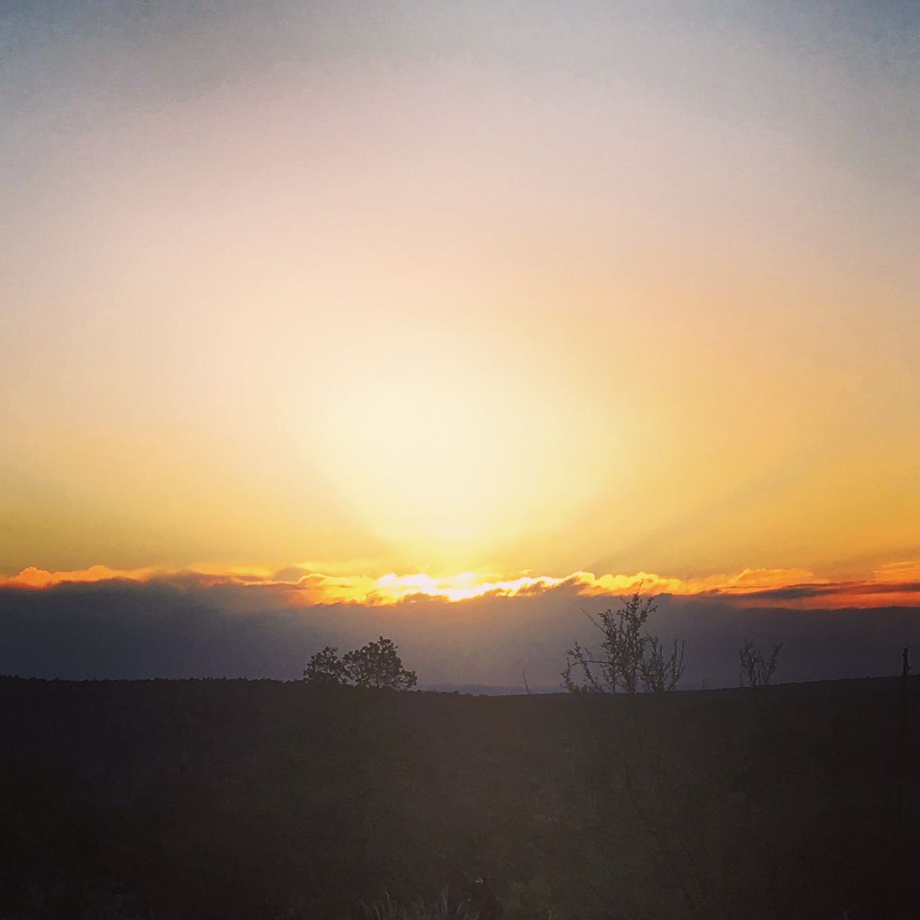 Sunday morning I treated myself by sleeping in until 7 in the loft of the A Space gallery in Silver City. Before leaving town I stuffed my face at Vicki’s Eatery for breakfast then relaxed for a little bit at Javalina’s (it’s a coffee shop, get it?). Queen B and I walked out of town around 10 through a residential neighborhood before getting back up into the Gila wilderness. After a few miles we took a left and started on the Gila River alternate route that will link back up with the CDT further North along the trail. We met up with Trooper, a hiker from Pittsburgh, at a little creek in the late afternoon and walked with him for about the next 5 miles or so. The three of us camped on some flat rocks near Hell’s Canyon spring. Ironic that it is called Hell’s Canyon because due west of us we watched the sun drop into some clouds along the horizon depicting what looked to me like the stereotypical version of heaven. The version of heaven depicted on prayer cards given out at funerals. If such a place exists, this just might be it.