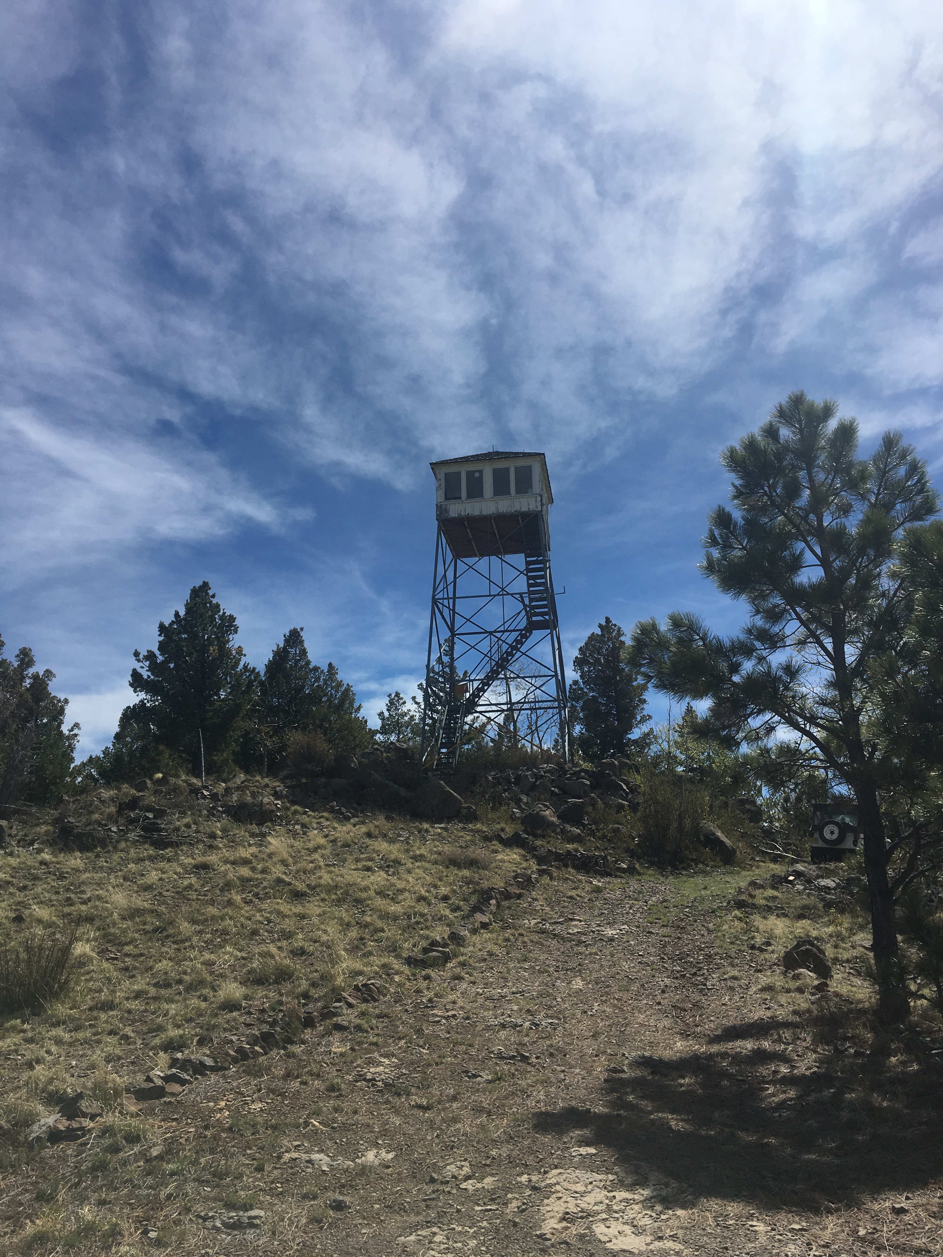 Another cold morning but a really nice relaxing day. Today was mostly a dirt road walk through pine forest but included some nice climbs. We topped out around 9600 feet on Mangas mountain that even had a working, staffed fire lookout tower. I checked that out of course and spotted a wildfire in the distance. Not about to pose a threat to my hike though. The forest service worker Mike, has a pretty cool job, probably on par with being a lighthouse keeper.
