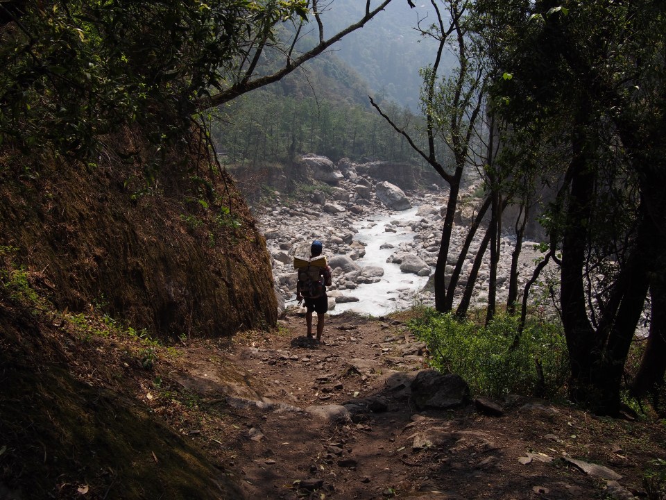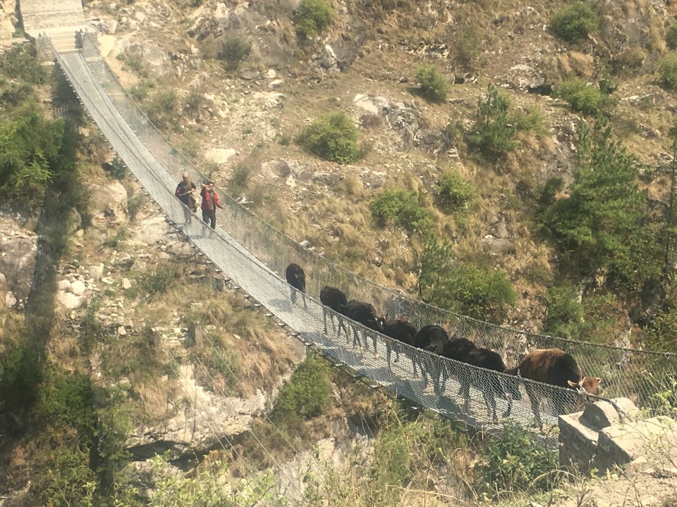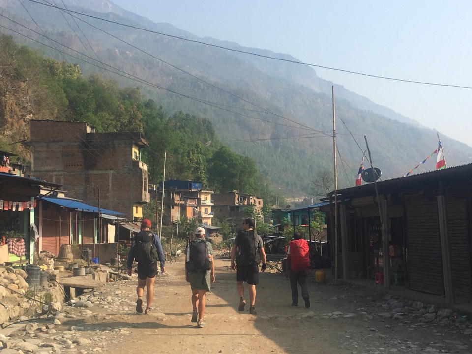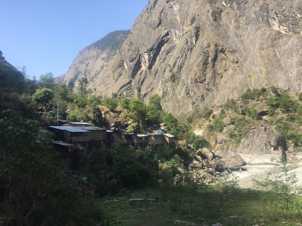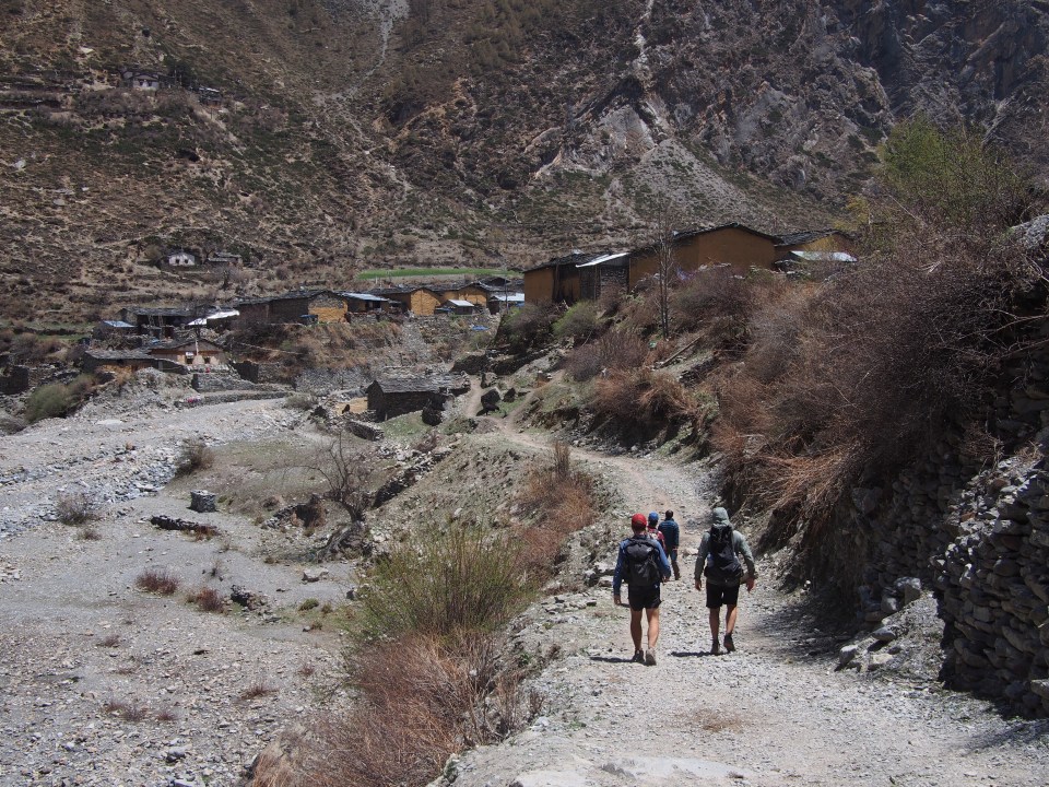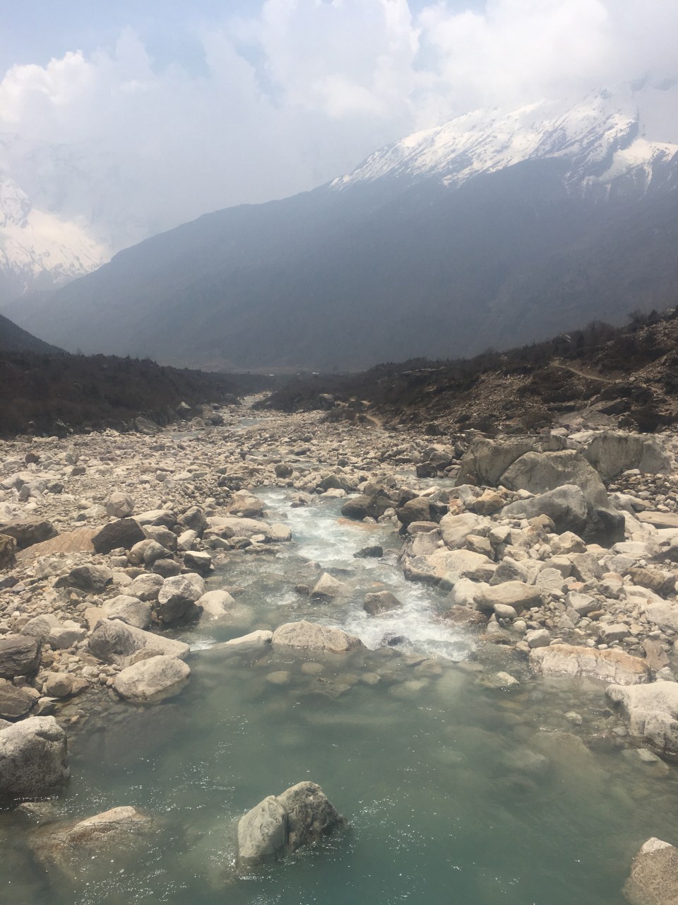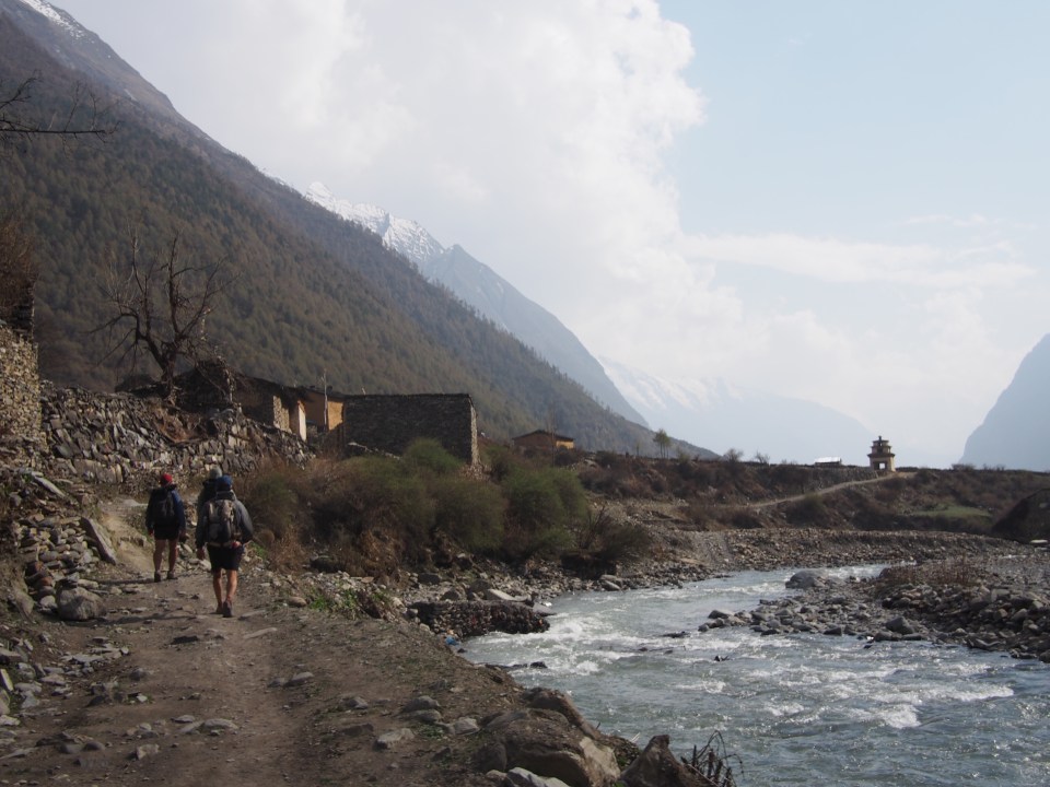 From lunch we walked a few hours downhill to Lokpa and then a couple more to where we rejoined the Manaslu Circuit and the confluence with the Buddhi Gandaki river. We all went for an icy cold refreshing bath in a little tributary to the big river. It was so nice! I love cold water on a hot day. We returned to the circuit and everything was new again.