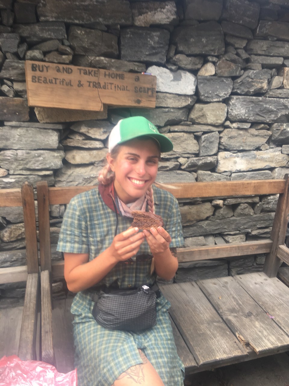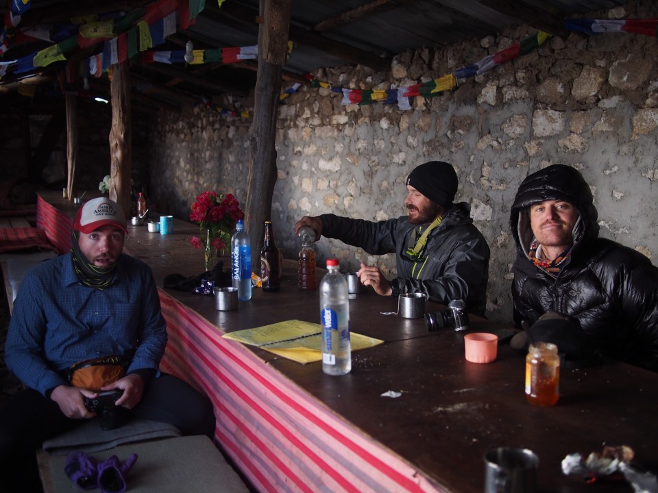 The lodge here is bigger than usual, has a wood stove to keep the dining room warm, a sit down(western)toilet, and some really good food. I got Swiss Rosti which is some kind of delicious fried potato and garlic pancake with eggs and cheese on top, my favorite dish of the whole trip. We also were able to get WiFi cards and had a little bit of service for the first time in a week. I mean a real little bit. Everybody had just enough service to get a message back and forth to their folks.