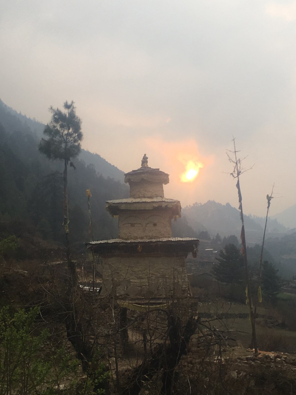 After we walked through Chhokang Paro the trail dropped steeply for awhile and we had to redo the dicey spot where the trail got real narrow and the footing was soft due to a previous landslide. I usually don’t like doing out and back style hikes but since I felt like death the other day it was nice to re-walk the same trail and I was able to enjoy it more. Same goes for the place we had lunch today in Chumling; 2 days ago I was throwing up in their bathroom and today I wolfed down a plate of fried noodles.