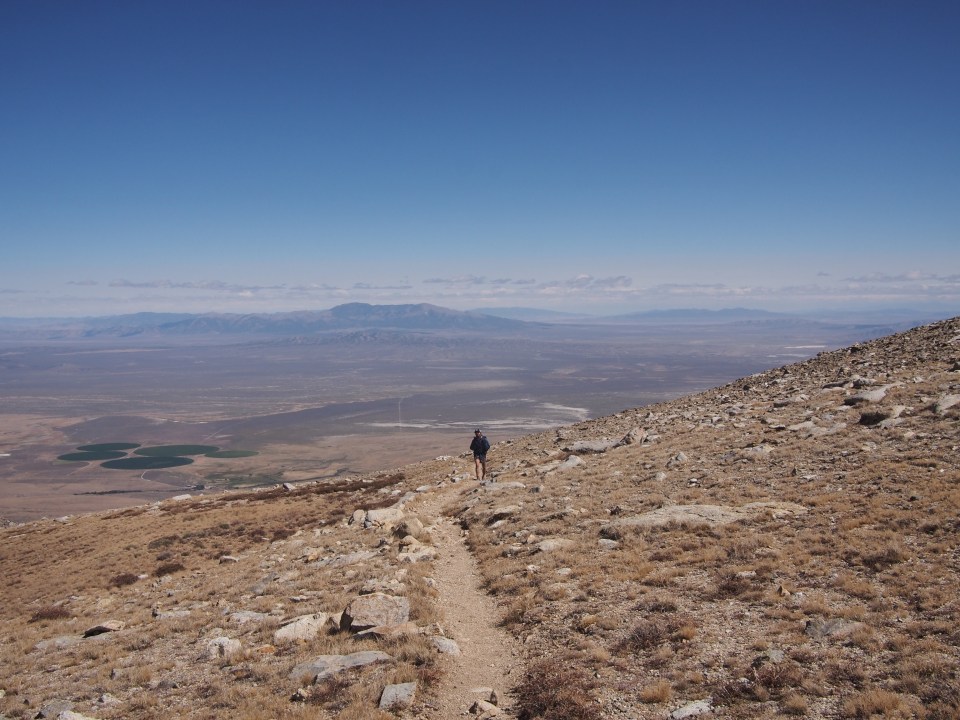 The Ruby Crest Trail begins at the trailhead at the end of the road and the first few miles we climbed steadily up past a few beautiful lakes to Liberty Pass. The views really were remarkable. This place is easy on the eyes. We walked up and down through a lakes basin for a half a dozen miles along with a bunch of hawks and other hunting birds before finding ourselves on a ridge walk for awhile. We topped out for the day on Wines Peak which I believe is the high point of the trail around 10,800 feet. There were a few hikers out there and one of them, Camel, was hiking the Hot Springs Trail which starts on the Canadian Border(I think) and goes to Santa Barbara specializing in hot springs. The trail itself was very nice all day and besides being a little chilly it was sunny and clear out. In the evening we found a cozy campsite next to scenic Overland Lake and quickly set up the tent and warmed up.