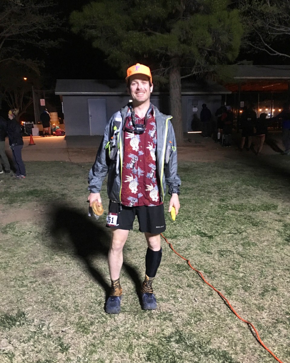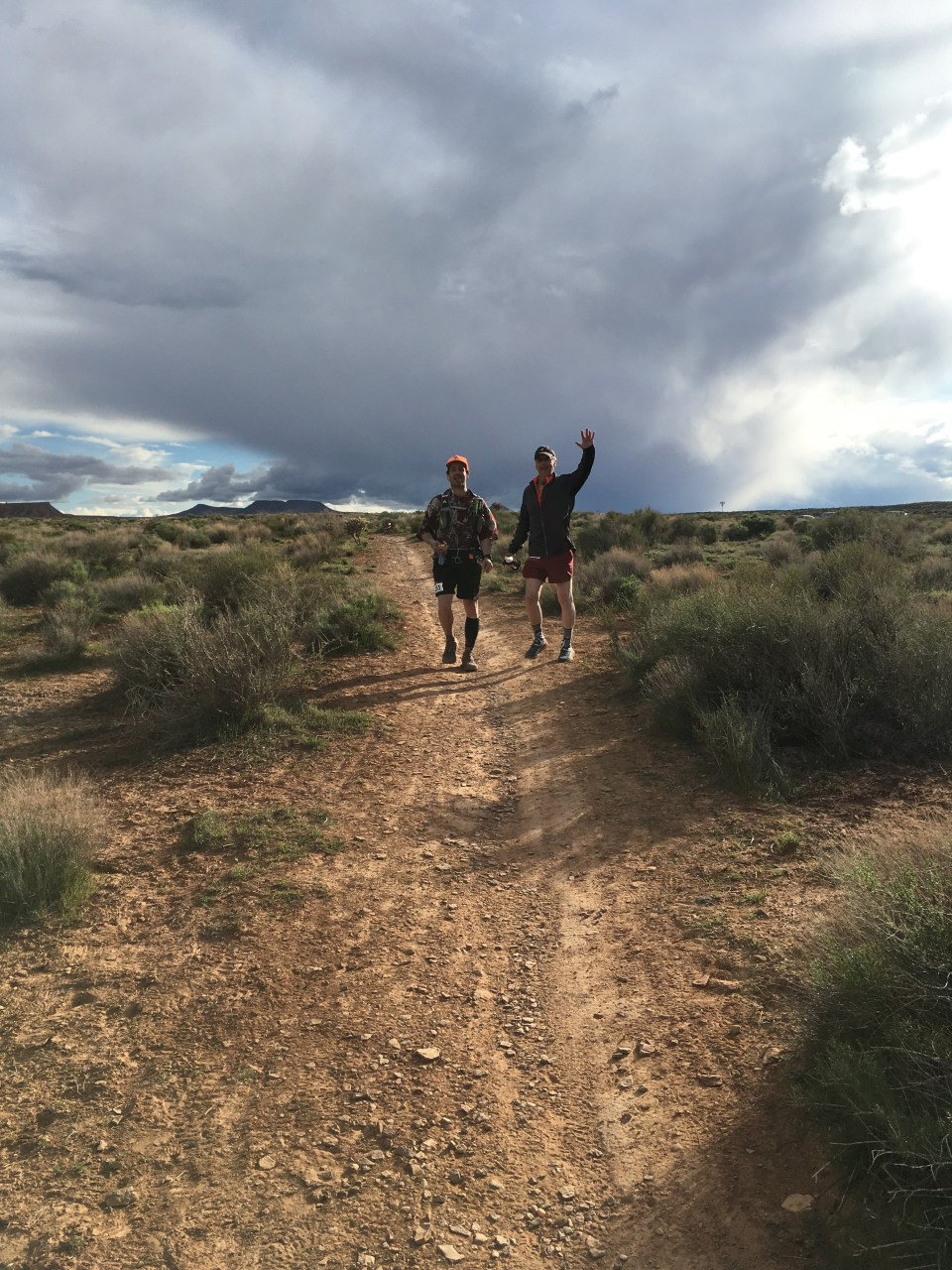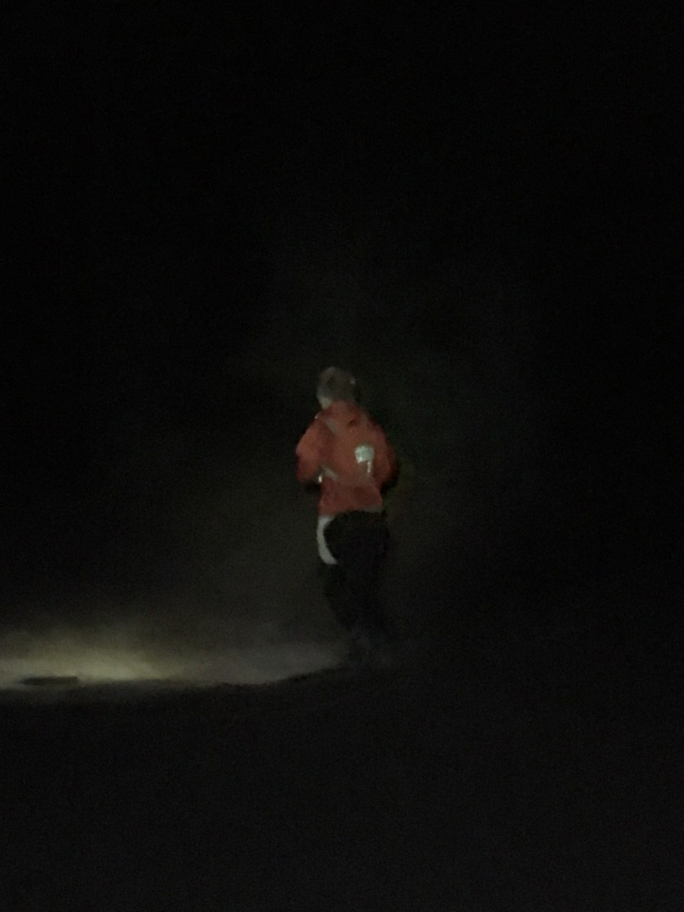 Sara and my mom met up with us at a prearranged meeting spot around mile 66.3. My dad was relieved of his pacing duties and Sara would be joining me the rest of the way. We crossed Rt 9 and started a long slog uphill for about 4 miles on dirt road to the top of Smith Mesa(70.7). I liked the climb, as I like climbing, and it gave me good reason not to run, but I was definitely starting to feel more nauseous. At the aid station it seemed a little barren, a runner there was really cold and as they were looking around for an emergency blanket for him it reminded me I should probably add a layer. I drank some broth and some ginger ale, was able to stomach a gel and got moving. There were fire pits and chairs at all the aid stations from here on out but as inviting as they looked Sara had a pretty firm rule about staying away from them. Good move, they sure looked tough to walk away from.