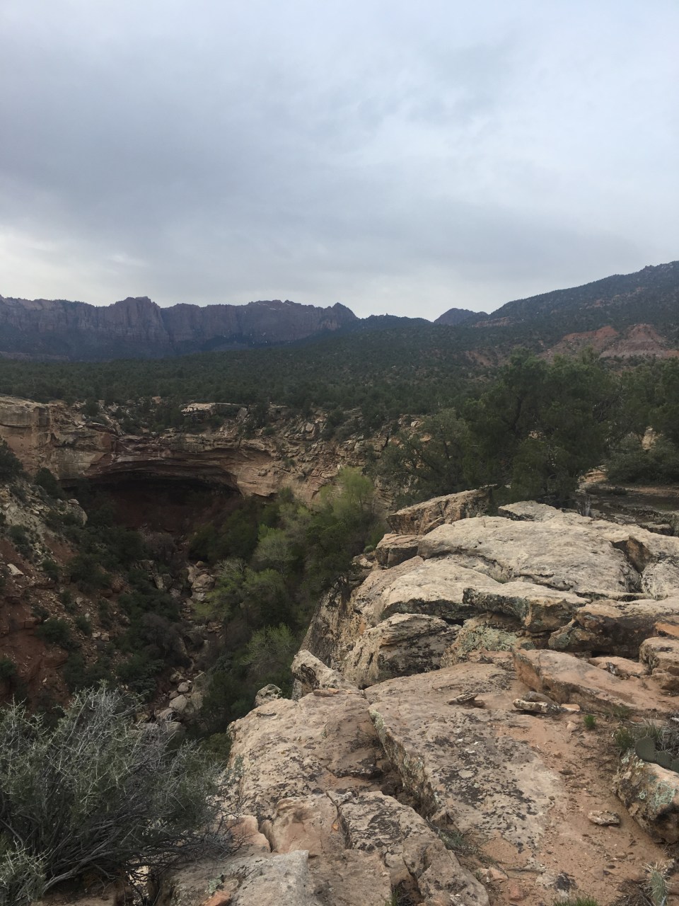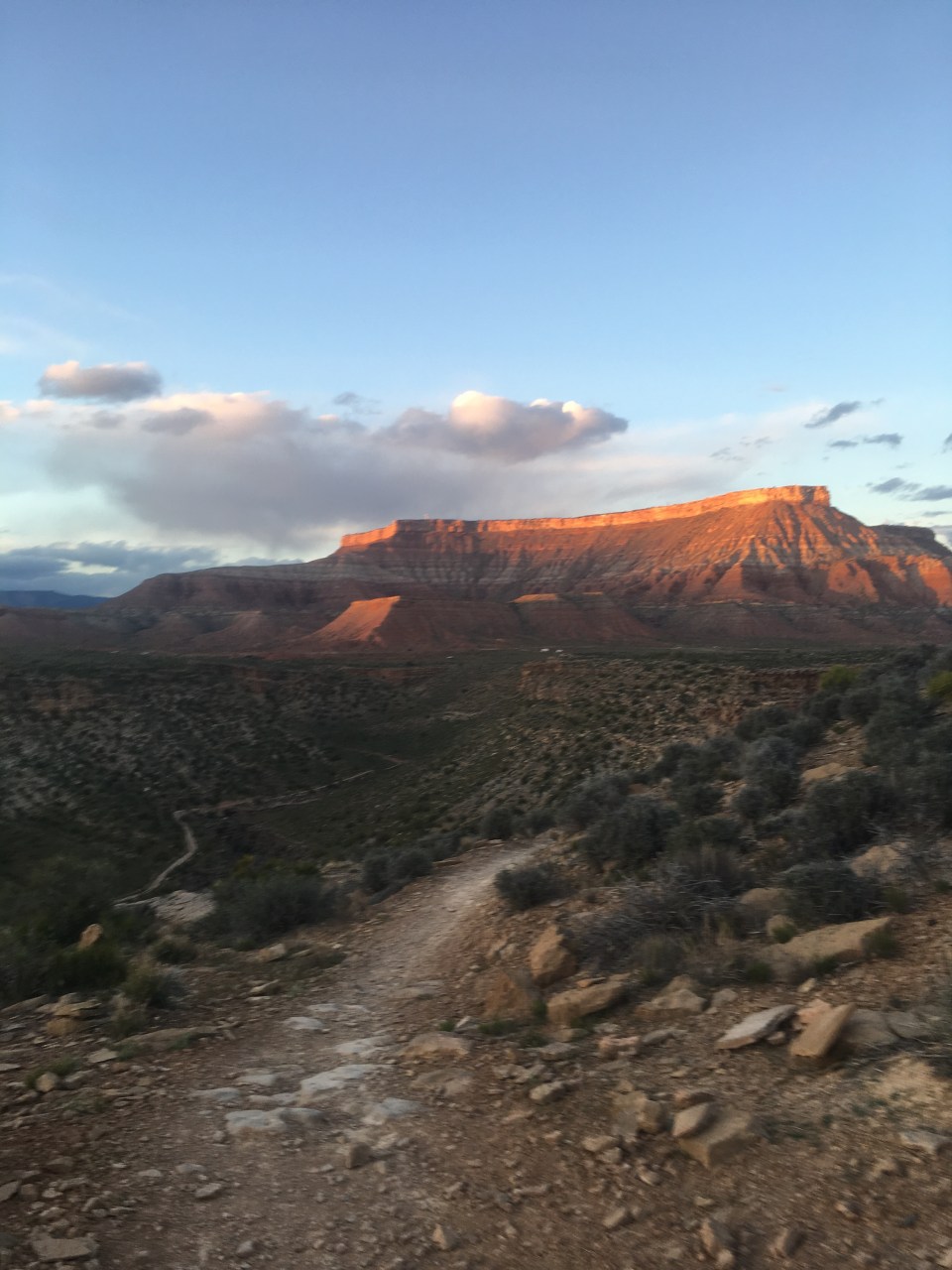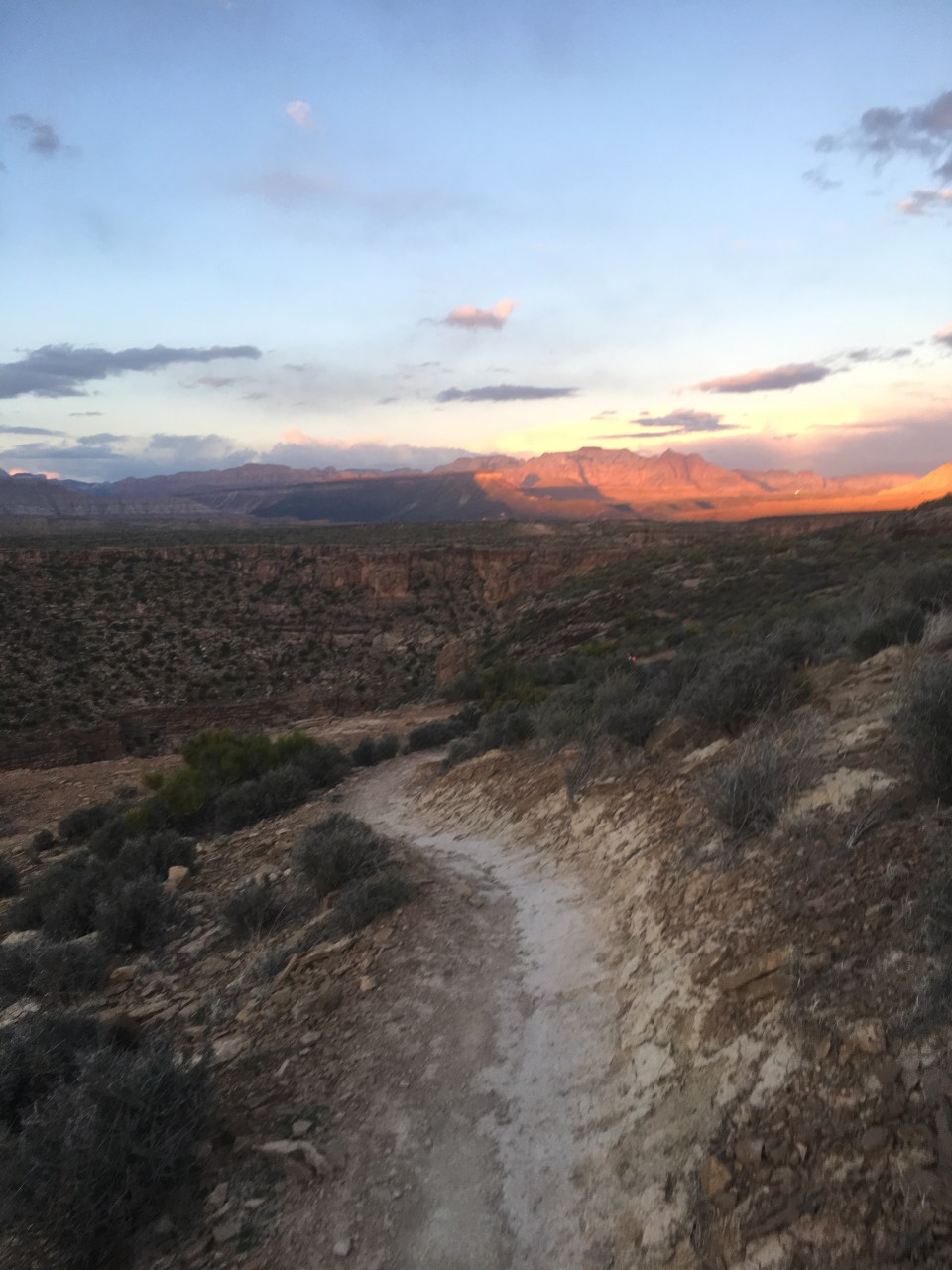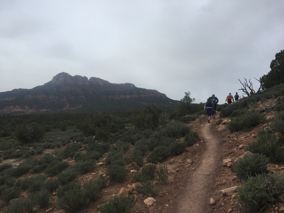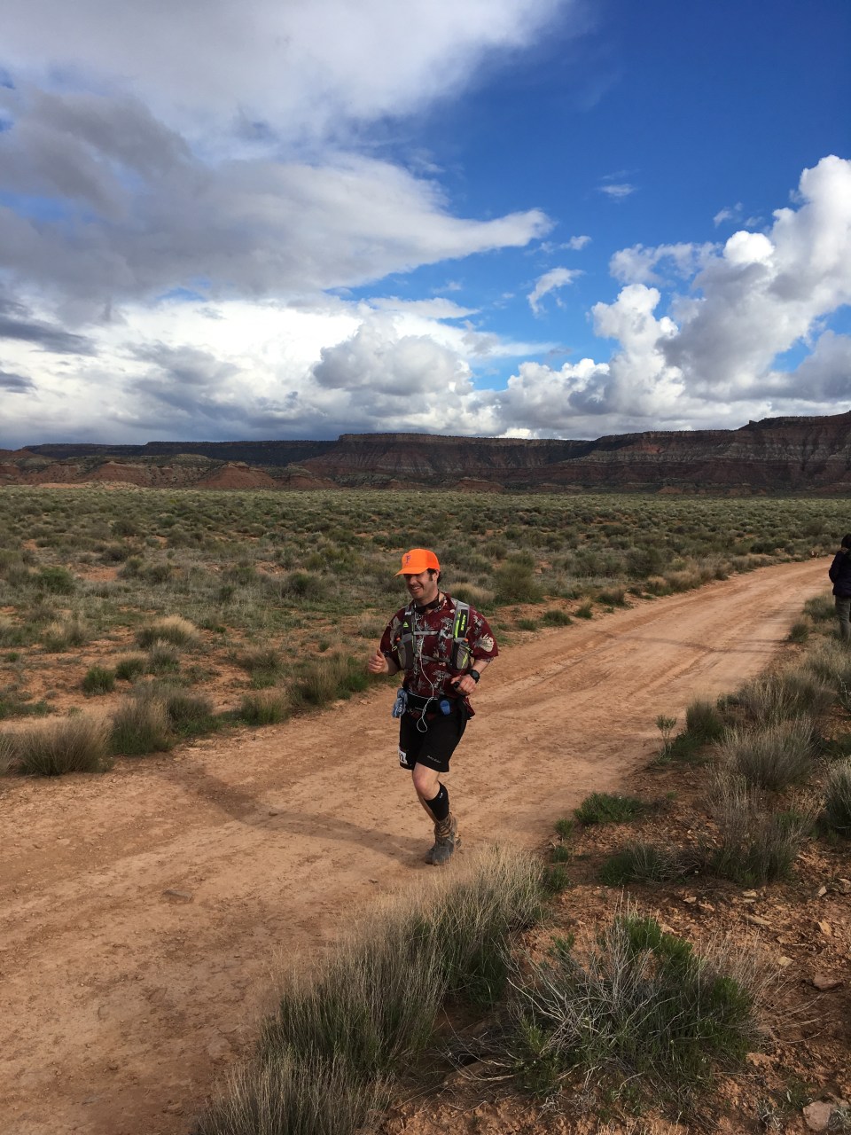 From Goosebump it was about 6 miles of dirt roads to Grafton Mesa Aid(11.4). This was the first crew access aid station and it was jam packed with spectators and fans and stuff, including my own which was nice. I ate good here, reloaded my fluids then carried on a couple miles downhill on dirt roads to Wire Mesa(13.3). There was an aid station here that we would hit twice so even though it came up quick I did my best to eat something and also pack my pockets with snacks. My plan was to eat as much as I could throughout the race(that’s actually my plan for regular life too) and so far I was executing. From our first stop at Wire Mesa Aid, the course went out on a really nice 7+ mile single track loop along the edge of Wire Mesa. It was very runnable and there were some spectacular views of Zion along this section.