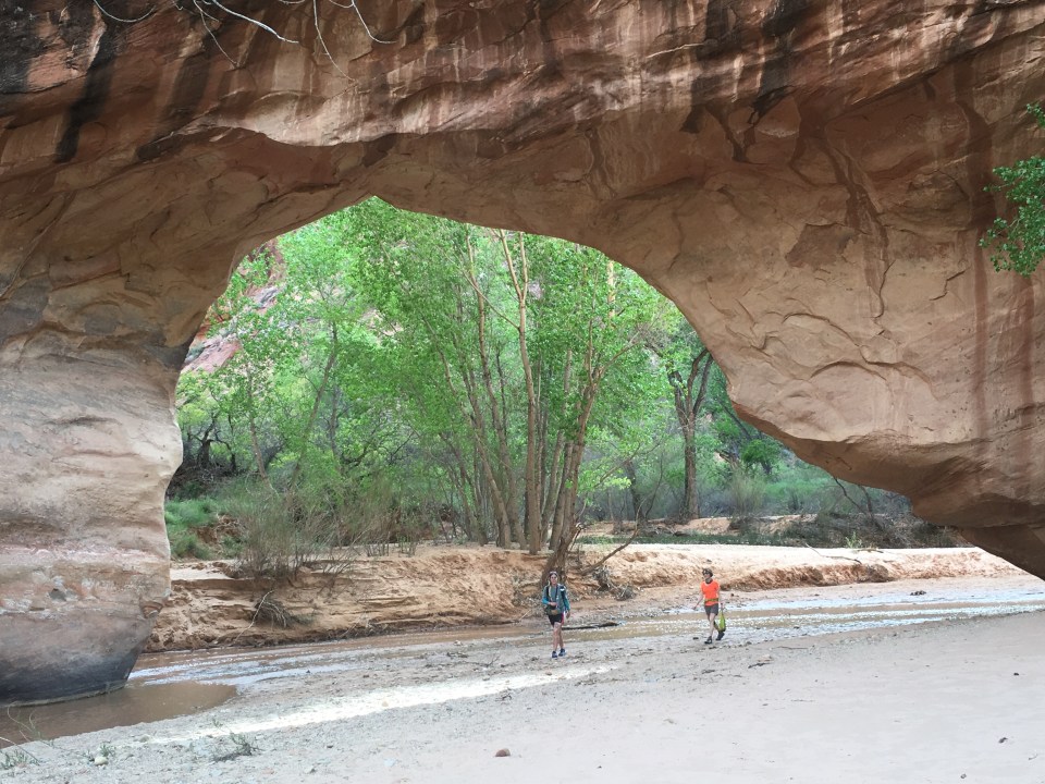 We only had a short distance to get to the road and back into town today but it still wasn’t simple. From our campsite we followed Courthouse Wash for 3 miles until it fed into the Colorado River. For a while there was trail or at least a dry sandy wash to follow then suddenly the canyon would become more narrow, the beavers would have a dam built, the water would back up and thick reeds would be everywhere. So even for a short stretch of hiking today there was still a fair amount of bushwhacking to do. Besides the bushwhacking though, it was awesome, much like yesterday where we walked through a canyon with massive red rock walls.
