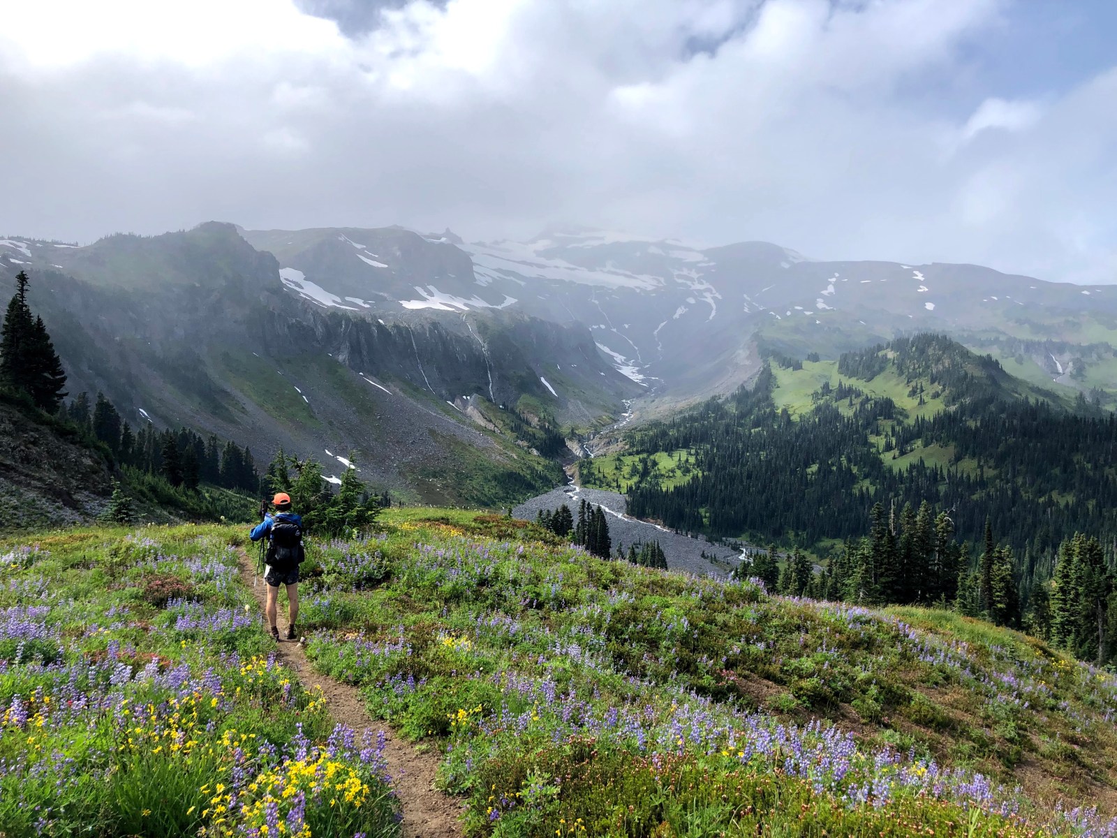 The Wonderland Trail is the premier volcano perimeter trail of the Pacific Northwest, or at least it’s the longest, that I know of. It’s a footpath that stretches 90 miles around Mt. Rainier, the tallest mountain in Washington and the beefcake you can see from Seattle and the Puget Sound among many other places. I first hiked this trail in September of ‘16 on three of the nicest days of that summer and have been telling people how great it is ever since. Sara had yet to see it for herself and I was definitely down to do it again, so here we are.